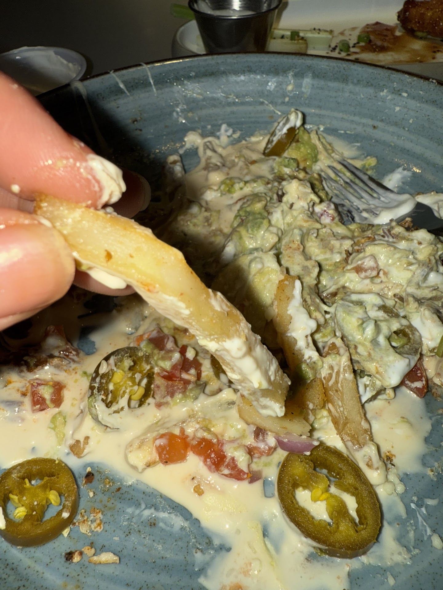 The fries were drowning in queso and the fries were not given cooked well enough to stand alone on their own one of the managers did make a remark regarding the wings and our server asked about the fries. I asked for the wings extra crispy. The wings were blubbery as if fried directly from a frozen taste.