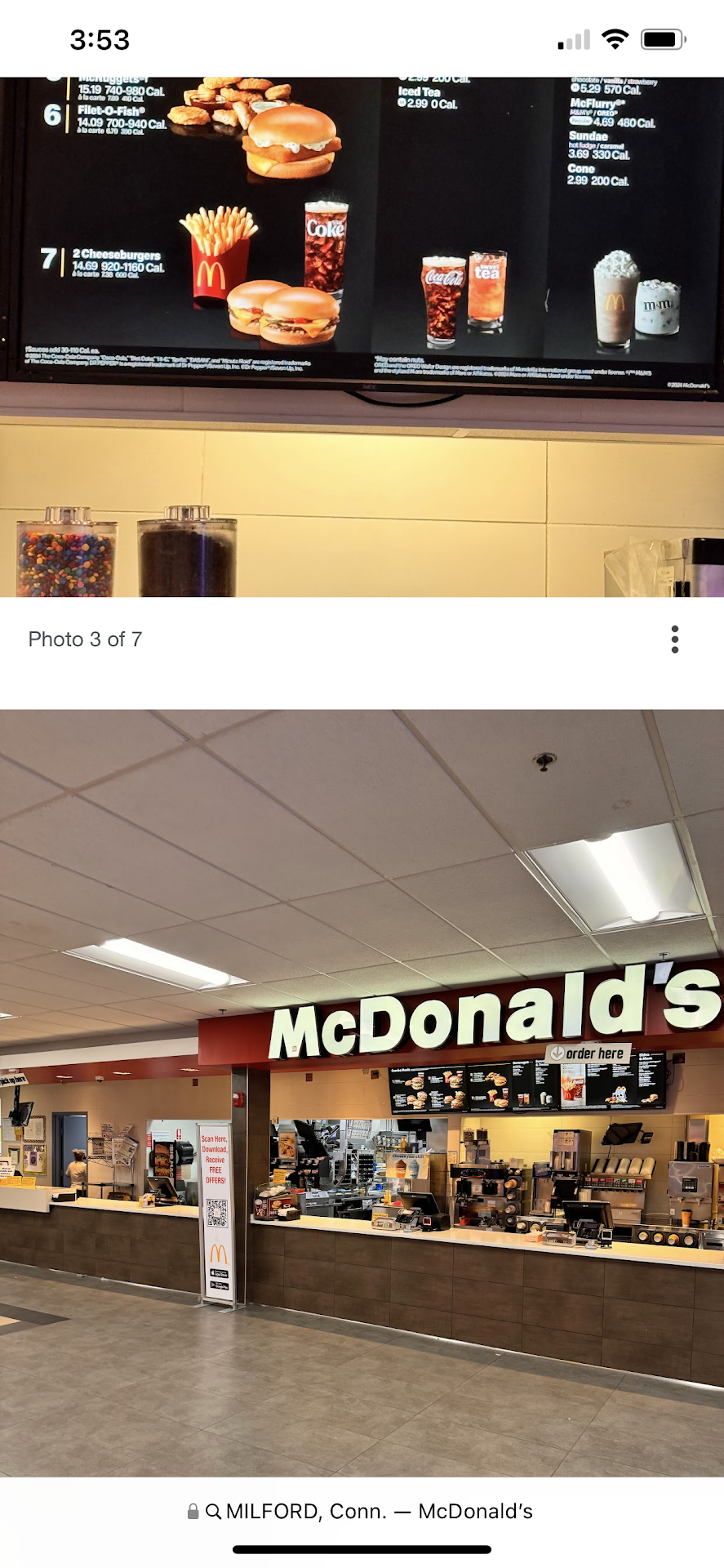 Read moreSo basically today what ever ignorant ass workers thatâs work to 10pm tonight of may 25,2025. I walk back into the rest stop and I am there because I was on a greyhound bus to Boston and also mind you I was in a rush cause I only had about 10 minutes left. I rush into the rest stop and order chicken strips and a medium fry and we can say that should only take 3 minutes but no it took longer. The reason was because the grubbiest employees that are supposed to do the cooking were too busy talking in Spanish which obviously not many understand so I graciously tell them hey Iâm in a rush how much longer to my food. They tell me 3 minutes. Mind you this time Iâm running back and forth from the door to see the bus and then he McDonalds in the middle of the food court I noticed not one but three employees snickering and talking about me in Spanishâs instead of there job to make my food knowing I was in a rush. But that fr all and I just donât take disrespect lightly but they had a nerve to continuing laughing sorry not sorry bum ass...