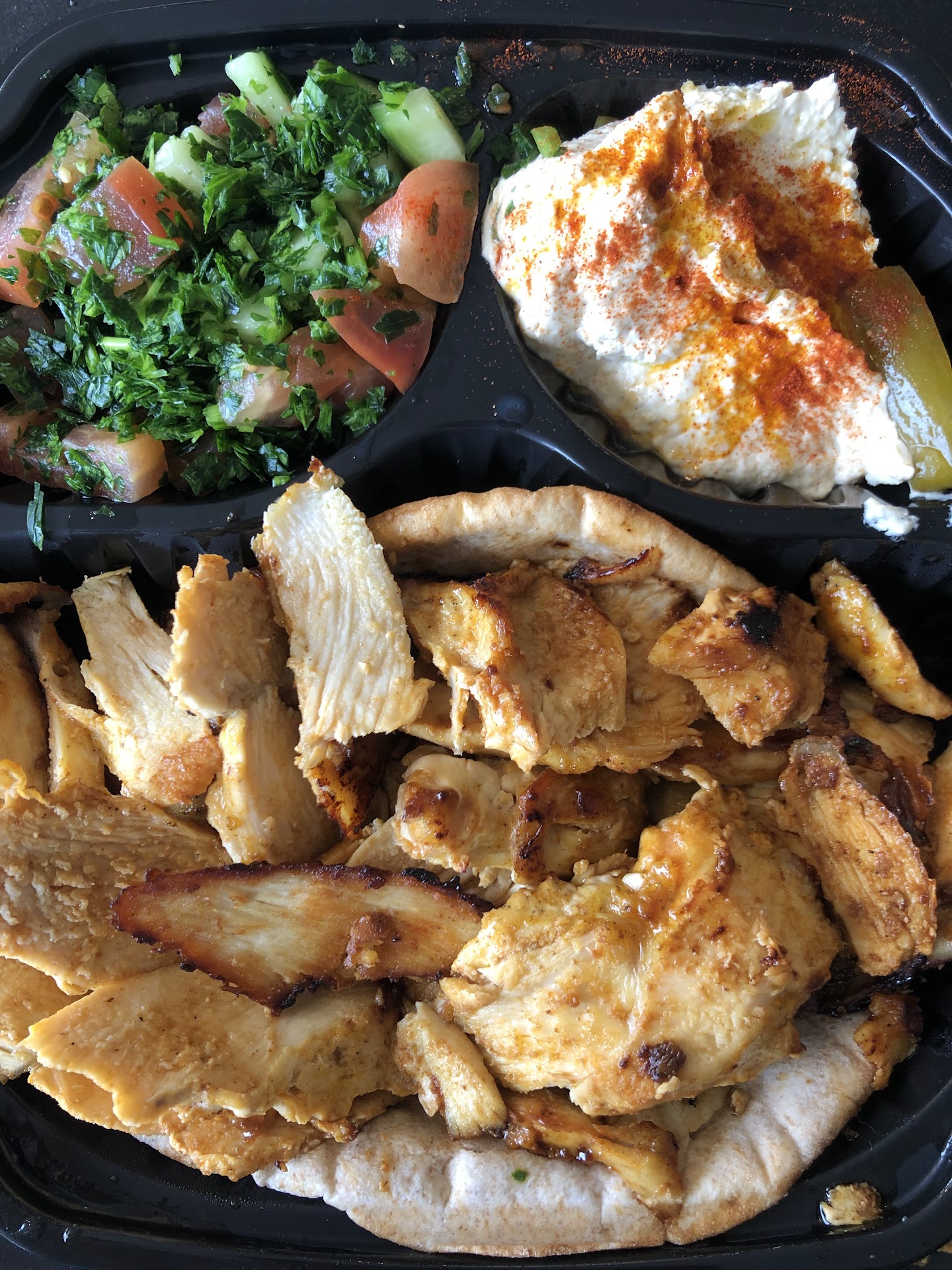 I ordered the Bulgar & Falafel Platter w/pita & hummus, to go..paid $13+.. & let's just say that I felt like I got robbed!!!! The container measured approximately 8"x8" AND it had those "compartment style sections," (which decreases useable space...sry I completely forgot to take a pic). All of the food choices were there..BUT in reality..I felt robbed..the portion size..was in line with EXACTLY why I don't like to do take out...I GOT ROBBED!!!! 1 Slice of pita..which was GROCERY STORE style...IF I wanted grocery store... a.k.a. NOT AUTHENTIC middle eastern food... I'd PURPOSELY gone to a subway etc..!!! I was SO DISAPPOINTED!! The platter was ok..I've definitely had much better locally! I would NOT RECOMMEND this place unless you feel like getting robbed for store bought ingredients, w/meager seasoning.. I feel bad because I REALLY wanted to like this place..but again based on quality & price ...NOT worth my...