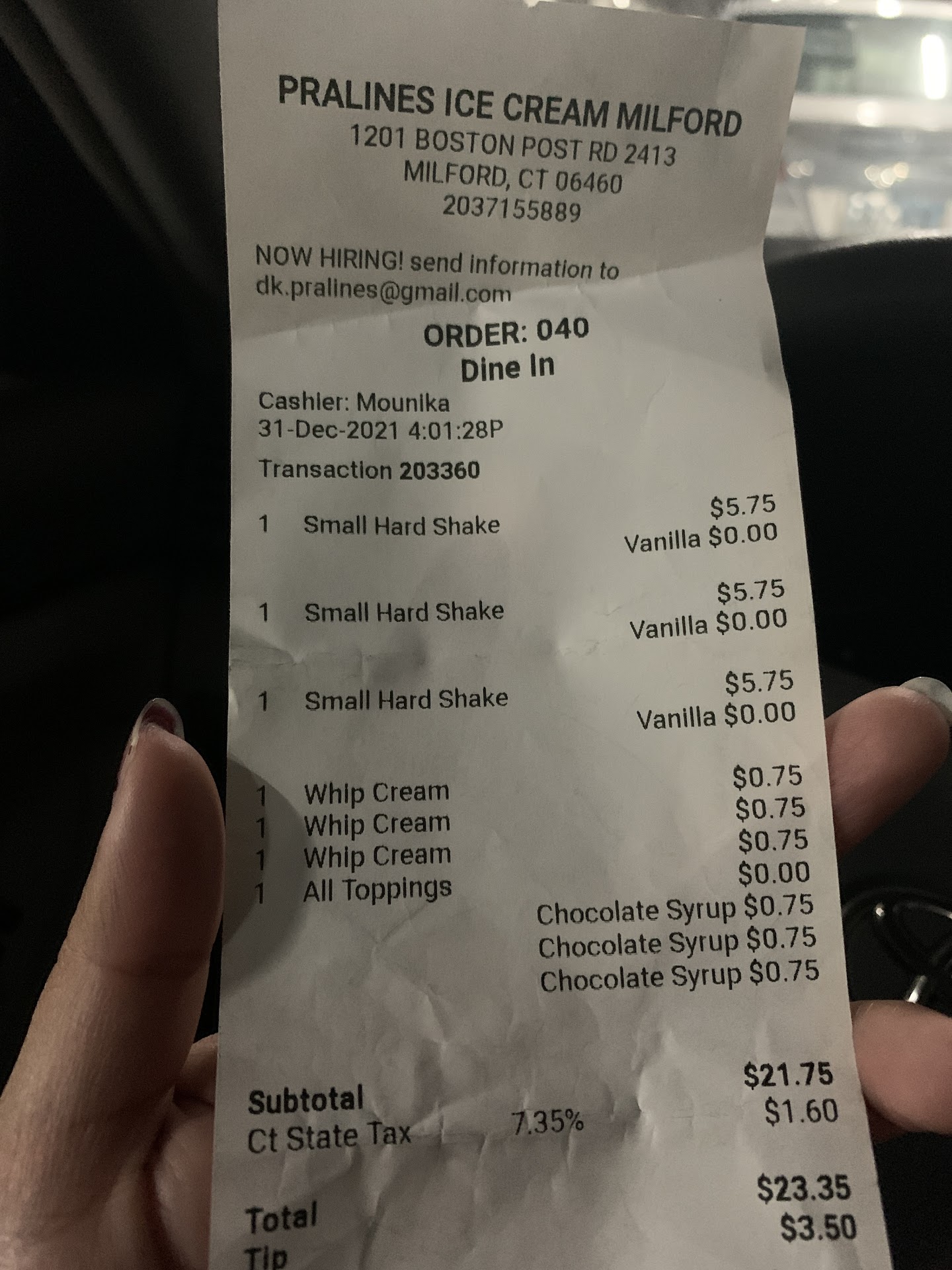 This place is owned by some cheap guy (possibly a desi) Who charges .75 cents for whip cream? it was a $1 canned whip cream that they used on my shakes. I ended up paying $26 for 3 small vanilla shakes!! What a rip-off… dont go here! I have never in my entire life seen a place charge money for whip cream not even mcdonalds does that 😂 And then she proceeded to charge me .75 again for a little chocolate syrup on top that too is the Hershey's one that i buy the bottle from the store for $2!! WHAT IS WRONG WITH THIS PLACE!!...