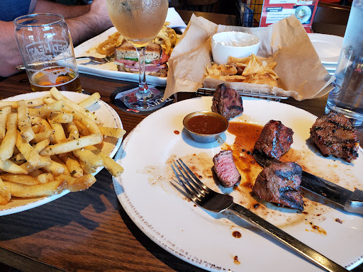 Drinks were underpoured, my daughters chicken tenders had no flavor but cardboard, my husband's wings were chewy. My steak tips were tender but not medium. I didn't get the mushrooms/onions. The salad had no ranch when I came out it looked as I was brought an already served salad as the tomatoes cucumber and onions were on the bottom and the salad had been already dressed. My daughter didn't get her fruit cup. Once I got my dressing there was food in it. Tips were a bit spicy.