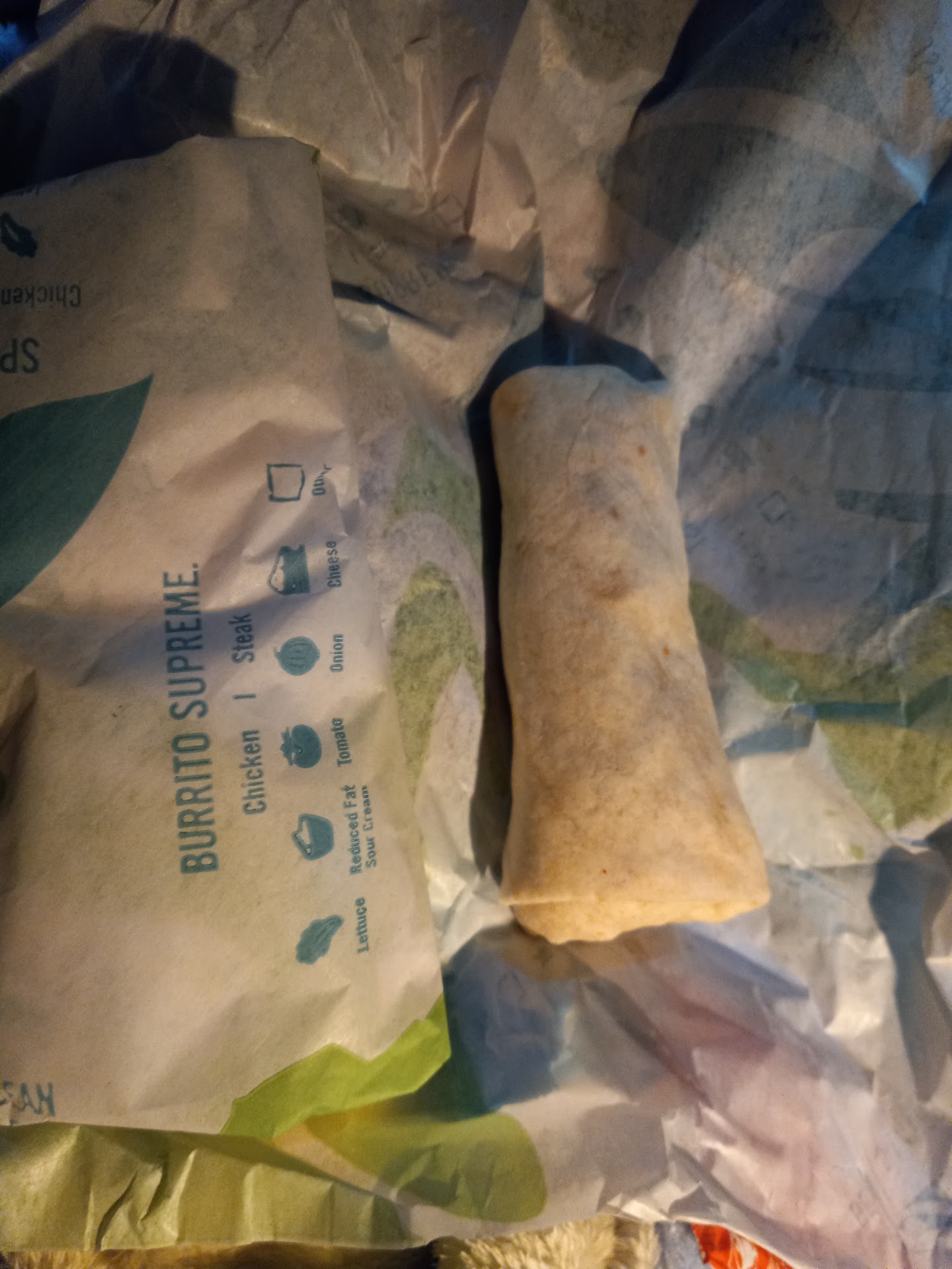 Read moreOrder: Cantina chicken burrito, Lg nacho fries, med. drink
