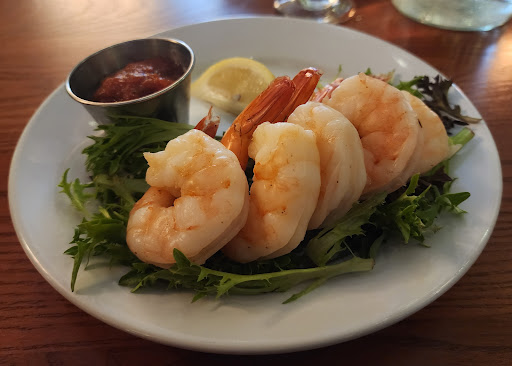 From the start, the service set the tone—attentive, knowledgeable, and refreshingly cheerful. We began our meal with two holiday-themed cocktails: an Apple Maple Old Fashioned and a festive margarita. The Old Fashioned was nothing short of a warm apple pie in a glass, the kind of drink that makes you feel like you’re being wrapped in a plaid blanket by a kindly innkeeper. Paired with my bay shrimp cocktail, it set the bar high for what was to follow.