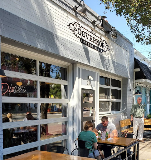 The Governor is a beautiful restaurant with a nice, crisp and clean interior that features tables that appear to be made from a light wood such as pine, clean subway tile on the walls, with concrete floors and both metal chair seating and booths. It is located in downtown Milford and has a little outdoor seating on the sidewalk when the weather is suitable.