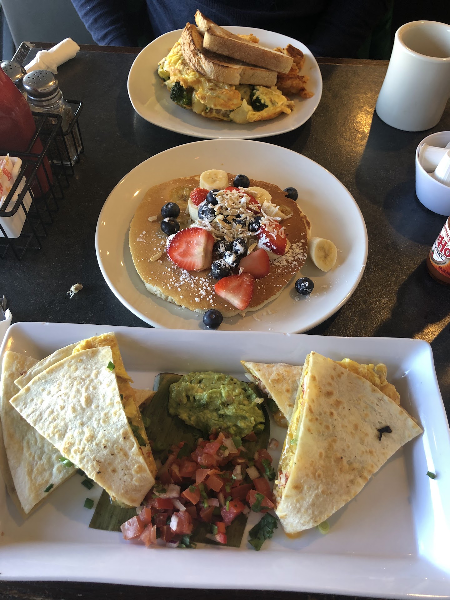 First time going to the Plate last weekend. The restaurant was very cold- the washroom felt like a freezer. I don’t know why the mid section of the restaurant feels just as cold as outside but it is. We waited about 10 mins for a table in the main dining area. Was promptly seen and asked about drinks. The server was very nice and attentive. Our mains were tasty- I got the lobster quesadilla which had a generous amount of lobster meat on it. My boyfriend got the special Mac and cheese omelet that was delicious. We werent impressed with their pancakes at all. They were very dry and plain. We had ordered their pancake flight - banana coconut, peanut butter cup and cinnamon roll. Banana coconut was a banana pancake with slices bananas, berries and dried coconut on top (as pictured below. It was disappointing as I thought peanut butter cup would be a mix of PB and chocolate, but it came out as a plain pancake with PB slabbed on top ... so that made it even more dry. The cinnamon roll pancakes were also disappointing as there was barely any cinnamon And a very small amount of cream cheese icing in the middle of the pancake. Would probably come back and have more off their egg items but unfortunately never again for...