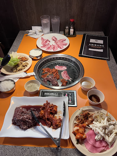 I’ve had KBBQ at Arirang in Lynnwood, but this location felt more modern and more up to date. Parking is easy to find as it is located in a strip mall area. There’s definitely more tables, so getting in shouldn’t be a problem. The grills have a built in fan, so you don’t leave smelling too bad :) they have 3 tiers of unlimited meat and other a la carte items, but I recommend the meat. The first tier will have all your basics and I think is more than enough unless you want some more specialty meat. It comes with chicken, pork, and beef bulgogi, as well as brisket and pork belly. Pork belly and brisket tasted a little dry. I enjoyed the chicken and pork bulgogi the most, as they had the most marinated flavor. The bulgogi comes in a halves of a plate but the brisket comes in a full plate, so be careful when ordering that. There did not seem to be a time limit or restriction on how many times you could order, but you’ll probably feel full quickly :) Getting sides and sauces are all self service, so the servers only bring you orders or the meat. The banchan bar has all the basics like kimchi, radish, lettuce, and even things like pasta salad and miso soup. You also get a side of rice, but make sure to save room for the meat. You will be a charged a $5 surcharge if you have a lot of leftovers, so be mindful. The restaurant seems a little understaffed as there were only what looked like 3 servers for the whole place. You had to pay at the front too since no one could come by the table. Overall a pleasant experience and I felt I got my money’s worth for KBBQ. Worth a try if you’re hungry and...