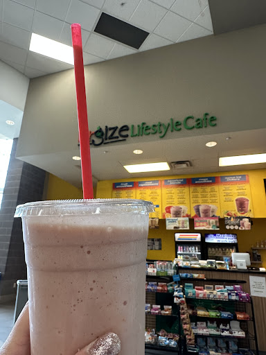 First off, this smoothie place is inside lifetime fitness. It is just around the corner to the left once you come in (near the swimming pool). It's not marked outside that I could see. The lady who helped us was so nice and friendly. She let us customize our smoothies and gave great recommendations. I would highly recommend visiting Nrgize. They have a wide selection of healthy smoothies, some that are just fruit based, some that are geared towards working out and some that are full of veggies. In addition they have a few "treat" smoothies and coffee...