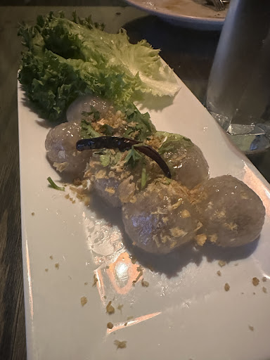 The dish wasn’t what I imagined from the explanation, the tapioca balls were extremely hot & sticky with flavorless, dry meat inside and then you just wrap a piece of plain lettuce around the hot sticky ball. No accompaniments, sauce, etc.
