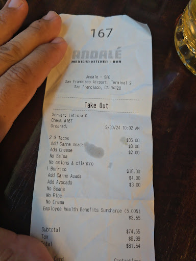 Read moreThe food is OK. I would actually rate it considering I'm a captive audience in an airport, not authentic but good portions and tasty enough. The salsa bar is a great bonus. The service really let's this place down tho. I get it, they don't make much more than minimum wage, it's super busy probably most of the time, & it's hard work! But when the cashier only screams "NEXT!!!" at you as you walk up (totally not necessary) and reacts when I ask a question by ripping a receipt out of the machine and violently slamming it in the bin, I don't even get what she was doing besides making a hell of a lot of noise, and then continuing to yell answers at me. Yikes. Calm down. Decent food or no being screamed at and treated like a number no matter where the place of business is poor hospitality. Not to mention the experience left me a...