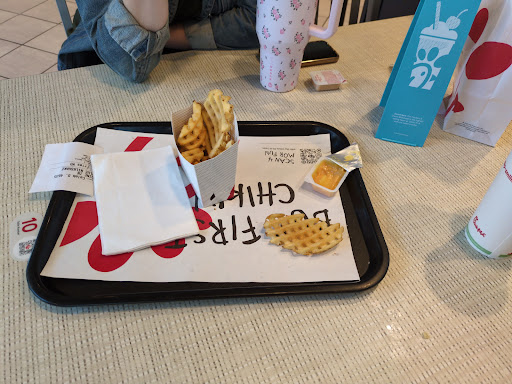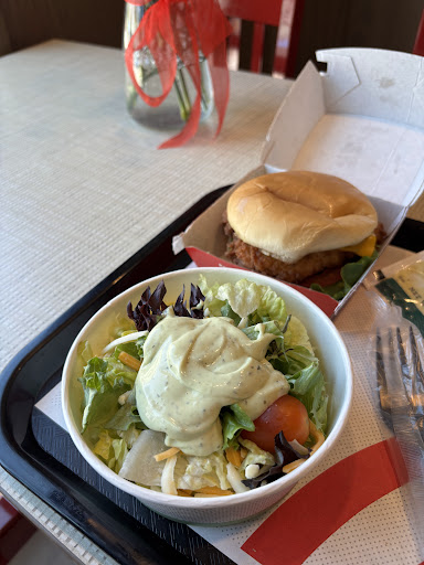 This rating is based on a fast food location, NOT vs a gourmet restaurant. 5 stars absolutely fit for this location. We had a team of 6 come in for a large order. The cashier/ order taker was attentive and got all our order. We found a table to fit our group and before we even started digging into the bags of food, a service person came by to ask if we missed anything.