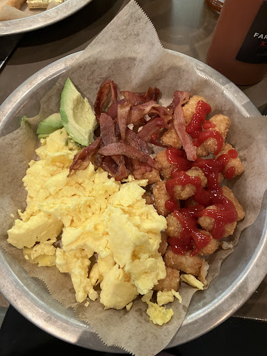 Read moreSee photos attached. This restaurant is overpriced for what I received. I ordered basic bacon đ„ and eggs đł with tots. The table runner/waitress named Kelly was excellent. With that said the restaurant doesnât have jam or jelly for the sourdough toast the only have butter. Thatâs a minus. How many people do you know put jam or jelly on their toast? I am one of them. They also donât have any steak sauce or A1 sauce which I like to put on my eggs. They only have Bbq sauce and Buffalo sauce and the Buffalo sauce is like drinking spicy vinegar! Yuck đ€ź. So needless to say they need more condiments to choose from with these prices. I am very disappointed with the food and prices of the food. They charged me $4 for two pieces of sourdough toast. You can buy a whole loaf for that much money. Talk about a mark up!! Bottomline the service was great but the food is overpriced and it wasnât anything monumental. It was a disappointment. I will not come back and I would not recommend this restaurant to anyone. Also,the acoustics are in need of an overhaul. Itâs really...