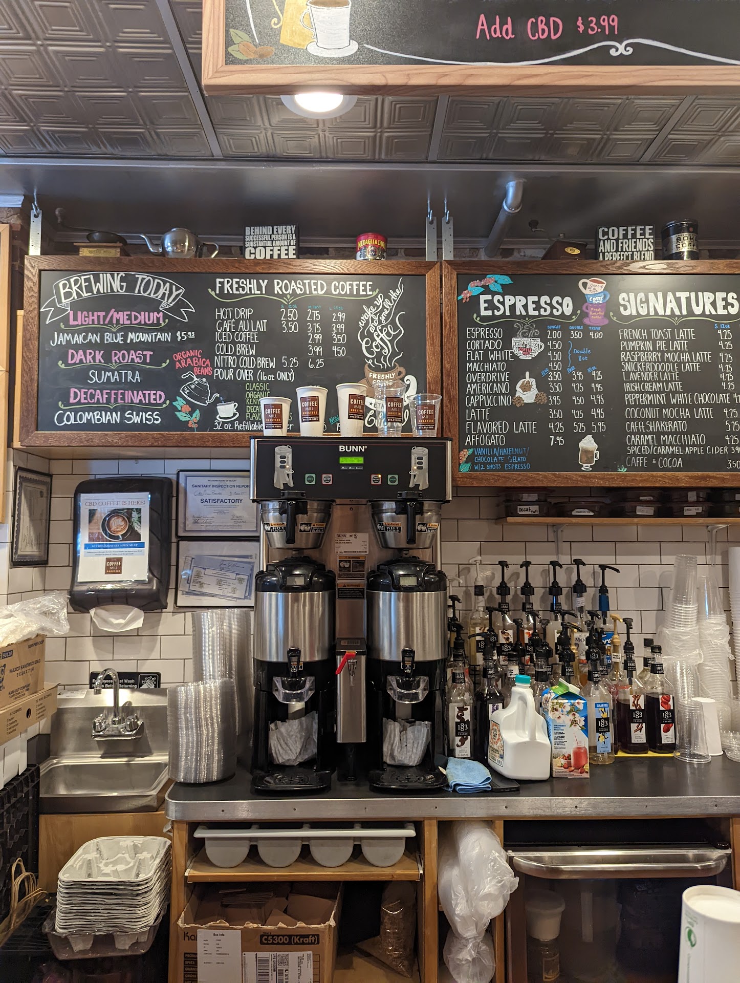 When we walked in the owner (presumably) greeted us and asked what he could get us. I ordered a medium coffee with cream and had witty/sarcastic & fun banter with him. He explained that his coffee was sourced from better roasters than the big chains and that I wouldn't need a lot of creamer, to which he was right! I didn't use as much creamer as I typically do and the coffee was smooth with no bitterness.