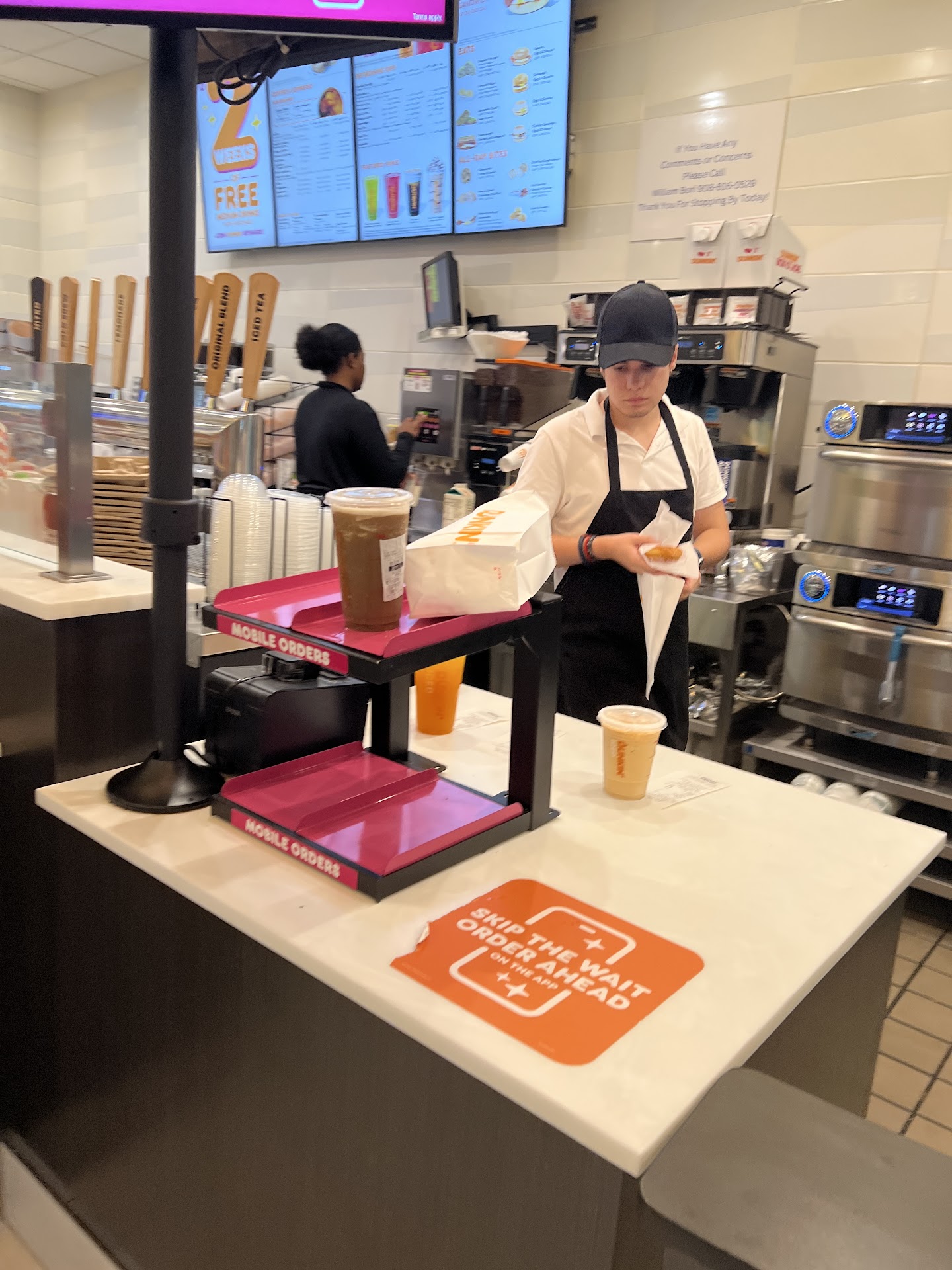 Wednesday 25 , the cashier so so but the girl who was doing the coffee very nasty, it seems that she was making a favor to me , I paid the coffe and she was talking with the people next shop I have to beg her making my coffee and she did a nasty way very unwillingness look at me as if I were a homeless, I strongly do not recommend this place. Rather the one in chatam or Madison both in Main Street they know what a customer...