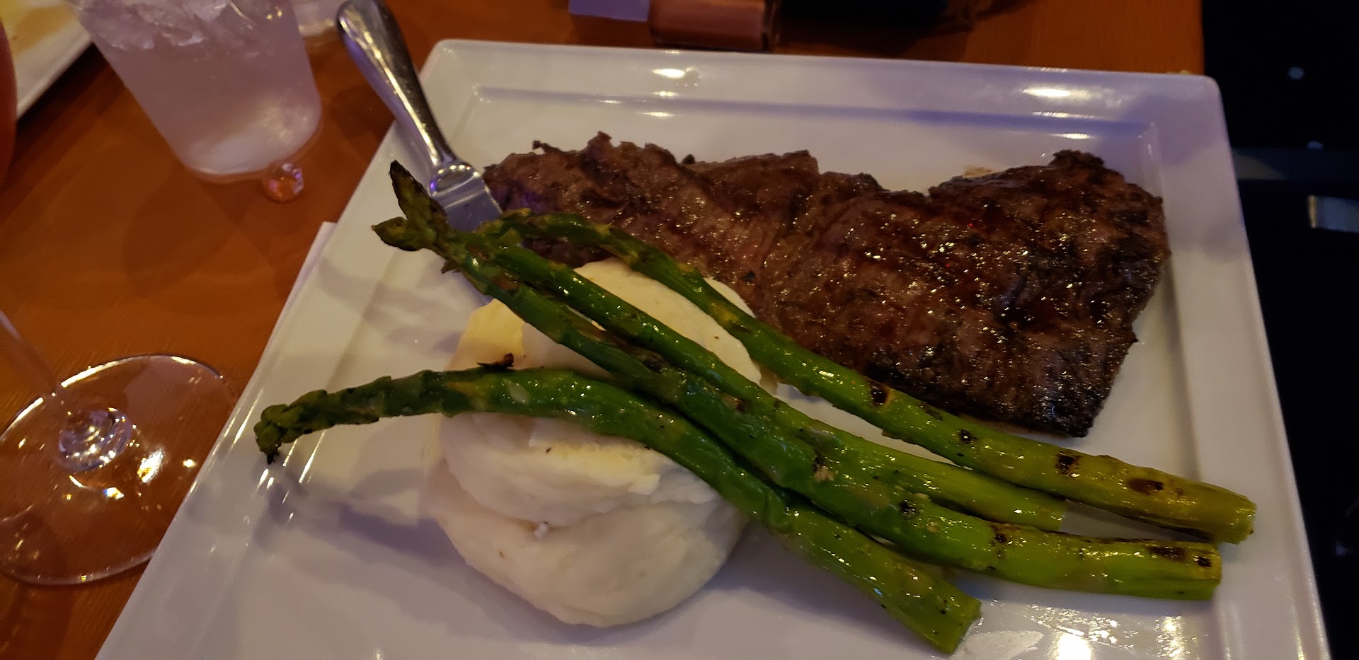 A other couple seats themselves after we arrived. Mind you, my husband and I were there about 5 minutes now without being greeted. The couple that sat right behind us is greeted first once the waiter appears. I wait a few seconds to see if the waiter will stop at our table since we were there before the couple greeted before us, not even an acknowledgement. At this point, I turn to my husband and we both agree to get up and leave.