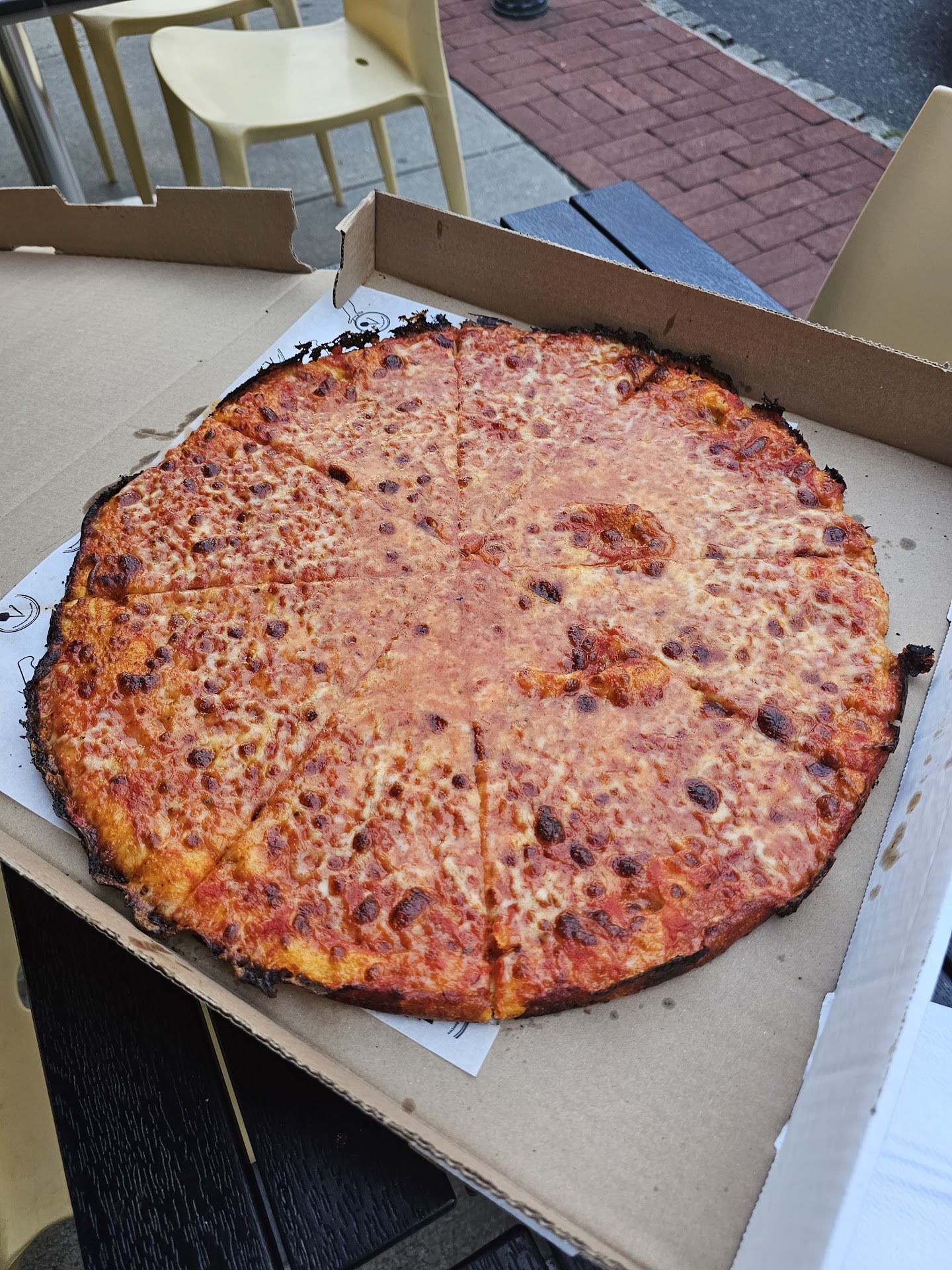 Read moreAlways an amazing pizza at this spot. I recommend calling ahead about 20 min before coming here. Nice and friendly staff. Restaurant doesn't have a lot of seating inside but they do have a fee tables outside where you can sit and eat if you don't mind people walking by and cars going by. Pizza is terrific. 8.3 from me for sure. Would be higher on it if they could figure out how to make it a little crispier. Since it's made in a pan, the pizza doesn't get a chance to solidify the same way a traditional made pizza would. However, the flavors and ingredients here are top shelf. You can tell with every bite that everything is fresh and high quality. It does have a little more oil than i would normally prefer, but it works well with the pie. The crust is a top 5 crust I've ever had. The cheese and the oil kind of dry up there, which makes this an amazing last bite. Pizza is a must try if you are local and even worth driving to if you are not too far. Location is nice too. Cute town and some additional shopping places within walking distance or a park to sit and relax. I highly recommend this pizza gem, and I'm glad i found it. Will try some of the other menu items over time. Been here twice and went for my personal favorite, a cheese...