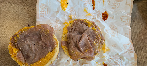 Doordashed this Arby's which is usually perfect, ate most of our food, then got to the beef and cheddar, first bite, fine, second bite, fine, third bite a blonde hair that I had to pull through my teeth to get out of my mouth. I tried real hard to move forward, opened the sandwiches up searched it, was fine. Another bite and guess what more hair. At this point I'm wondering I'm questioning, I pull a strand of my own hair out, and yep, I'm a brunette. Next, I stare at my partner looking her head to toe and what do I find? Another brunette. So I go yucky huh no thank you. Maybe wear hats and keep hair up if you're going to serve food.