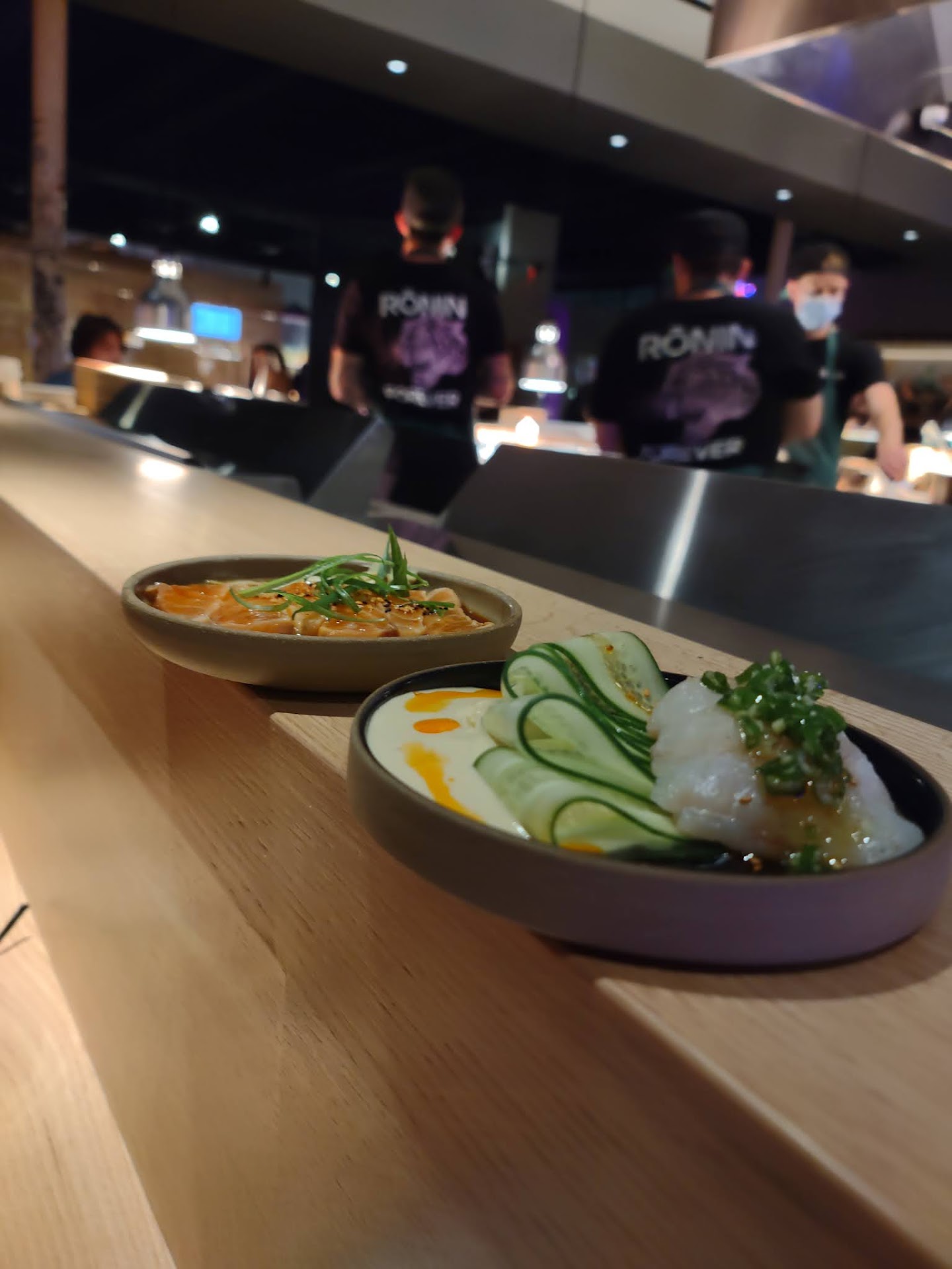 Read moreOne word, incredible. Bar Ronin is a new, Japanese restaurant located in the West Erie Plaza. Nestled in a corner, you come up to a modern entrance and walk in. It's softly lit with tables, chairs in the lounge and seating around the kitchen. It was full when we got there, highly recommend reservations. The maître de was friendly and took us to our seats at the kitchen. Sometimes that type of seating is awkward and loud. They were great seats, we got to watch all the cooks working on all the different food, it looked choreographed, they didn't run into each other and knew what they were doing. Started the evening with I drink I would never have ordered in the past #whythehellnot called The Lonely Ronin. The ingredients, Nikka Coffey Grain Whiskey, Carpano Antica, Aperol, Orange Blossom Honey & Reduced White Balsamic, I would never have put together. Served on the rocks, the first sip was a surprise, the flavors were strong. This was a sipping beverage, not one you want to have many of. Flavor is different, but really tasty. I would order again. My friend got Dreams of A Geisha which came in a tall glass and was a pretty color green. It looked super sweet but ended up not being that way, again, a very tasty drink. They garnished the beverage with a leaf of shiso, an herb in the mint family. It had a nice flavor, almost like basil but not. I know very helpful. And yes, I looked it up. We started with two appetizers, Whitefish Sashimi & Wild Salmon Tataki. Both looked incredible when they arrived, very pretty but the taste was outstanding. Perfect balance of flavors, I could have continued to eat more. For our entrees we both ordered the Smoked Brisket Ramen. Again, a pretty presentation, broth was flavorful, noodles cooked perfectly and a wonderful taste when all together. I would eat this instead of chicken noodle soup when not feeling well if I could. We also ordered Stir Fried Iceberg lettuce, yup lettuce. Served in a delicate pile on a plate, grabbed the first bite. It was damn good. Not in a million years would I think to stir fry iceberg lettuce of all the lettuces. The overall meal was incredible, great atmosphere reminded me more of a big city restaurant. Cooks were friendly and the waitress was knowledgeable about the menu and what would go with what. As a note, the food is not local diner prices, but it...