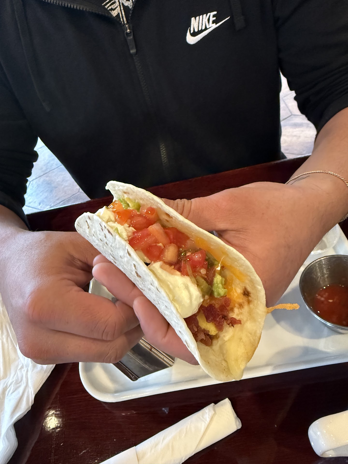 We had the sausage gravy ,pancake & breakfast taco. The best thing of all 3 were the tacos- quite yummy but small in size. Everything else was really average. We would go back to order off the lunch menu. The staff was really pleasant! The items in the bakery area looked delicious. They were jammed packed but food came out quickly & hot. We were looking for pet friendly* we normally dont take dogs to restaurants- but she is a puppy & not ready to be left in her kennel- I guess they have it listed as pet friendly because they have outside tables but they dont bring out water bowels- you order inside & they brought our food to the table arranged as carry out- so keep in mind if you use outside dining they dont check on you for...
