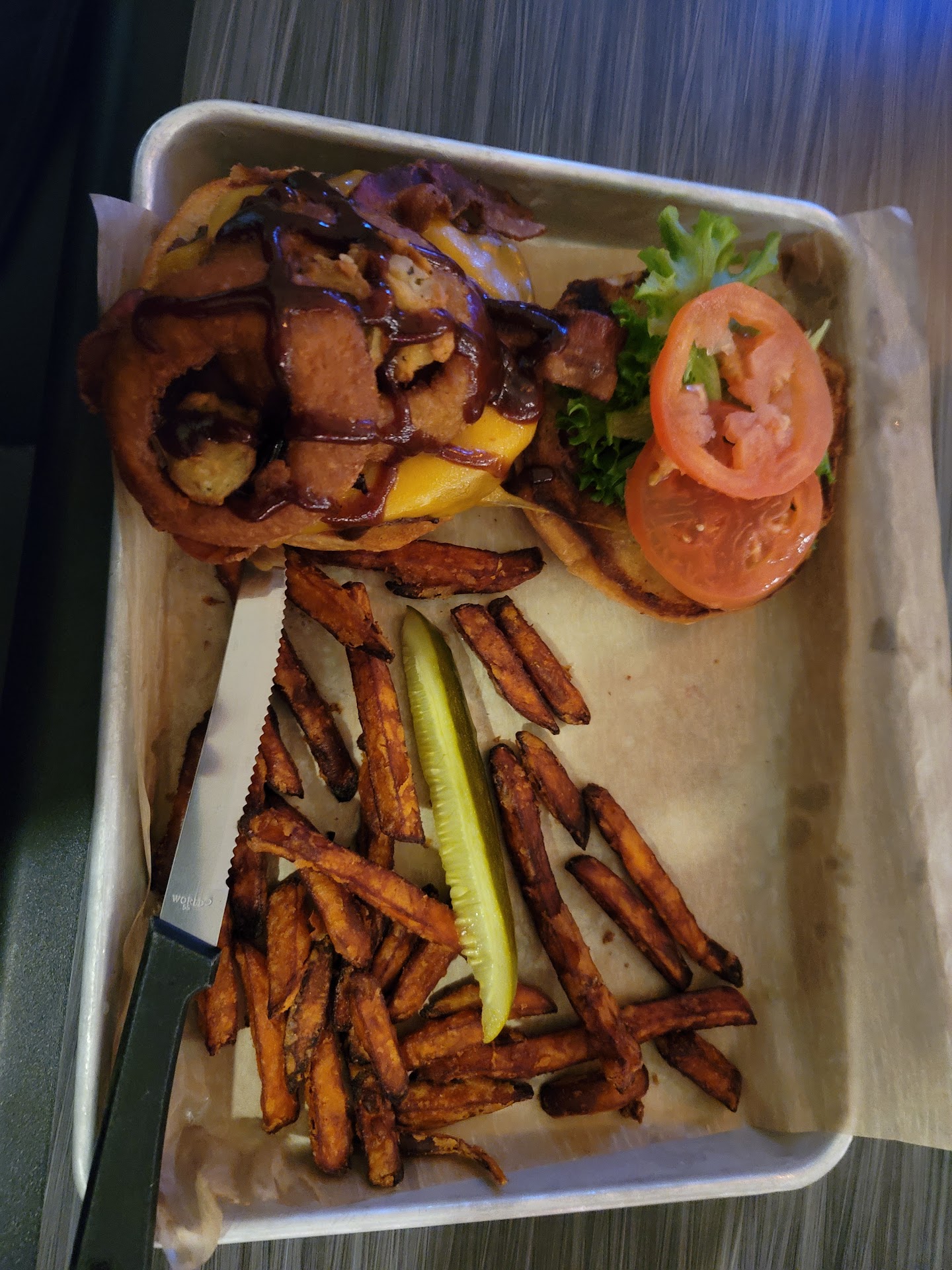 The burger lacked in overall flavor. It was very cheesey, but you could not taste the cheeses. The tomato aioli seemed like it wasn't even present. The texas toat was so-so and a bit too soggy for my liking. Overall, I do not feel like it was worth the $16 it cost me. It felt more like a $12-$14 meal. It was a disappointing choice overall.