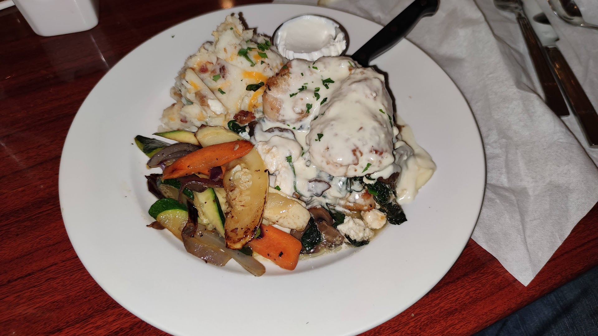 We tried the Bistro Crab cakes, Ribeye, and Filet mignon, wish mashed potato, sautéed veggies and gnocchi for the sides. Everything was delicious and seasoned well.