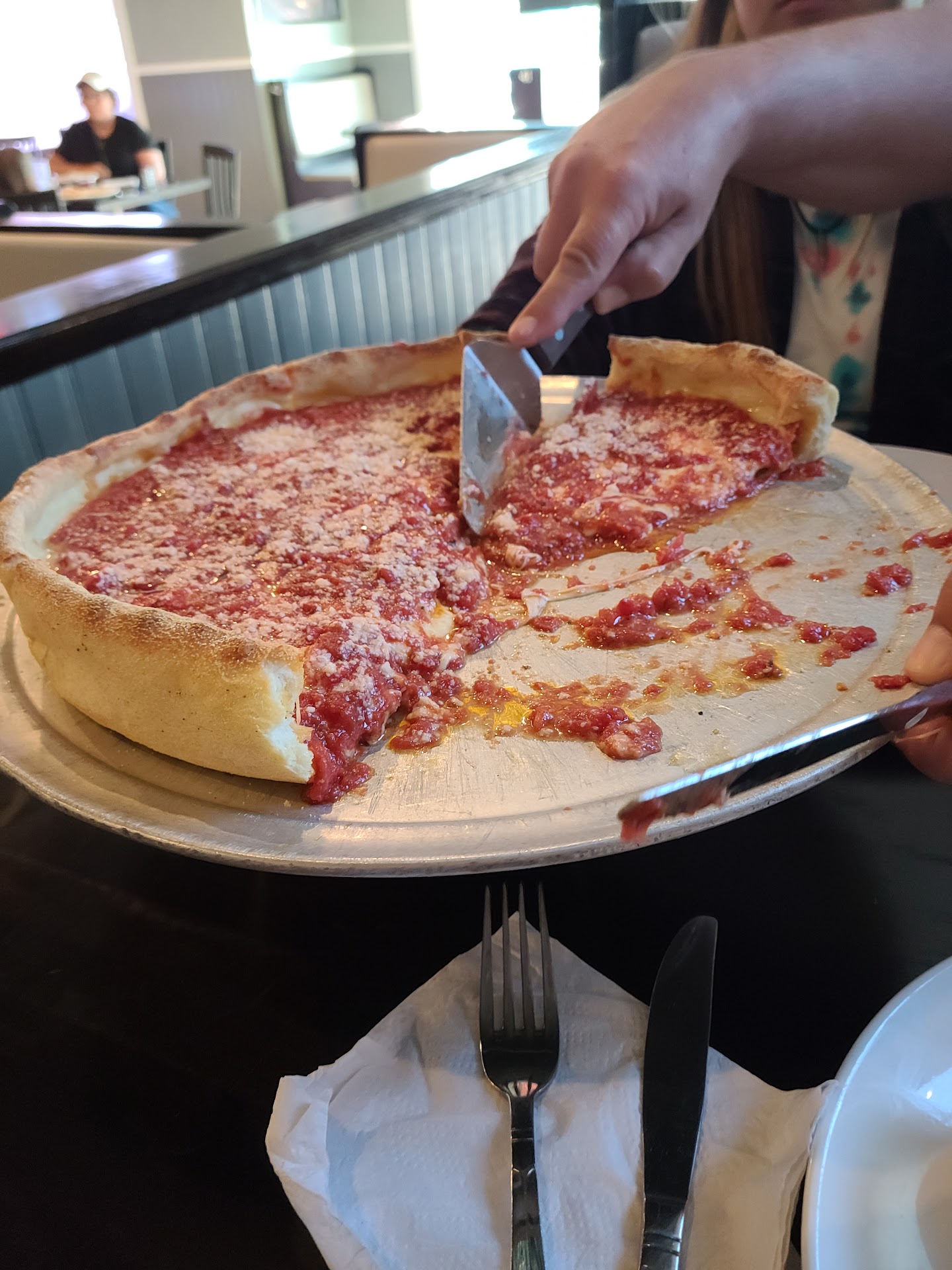 Sweet Neptune. I came into the store today with a group of friends hoping to grab some grub. I look up a the menu and see what was called a "stuffed pizza." I asked to know what sizes the pizza came in, and the ladies behind the counter said just 14 inches. I thought to myself, "surely a 14 inch pizza isn't enough for three grown men." The women reassured me that it would be plenty, my friends concurred, and we ordered the stuffed pizza. Expecting some sort of calzone-type pizza, we were surprised to find what can accurately be described as a deep dish cheese pie. Not pizza-pie...pie-pie. I am talking a calculated 154 cubic inches of pure, unadulterated cheese. Now sure, I am a cheese lover. But after finishing one bite of pizza, I quickly realized that the ratios were drastically skewed. I am talking 3 pieces of meat, a tablespoon of sauce, some crust, and 10 frigfragpaddywhackin' pounds of cheese. Enough cheese in each slice to satisfy two weeks of recommended dairy intake and back up your digestive system for a month. Chuck E. Cheese himself would have been unable to consume this pizza. Now don't get me wrong, the first bite tasted about a 7/10. By the time I had finished the first slice I was physically struggling to get the cheese down my throat, to the extent that I was getting ill just looking at the cheese that was literally piling out of the sides. I am not exaggerating when I say there was a layer at least one inch thick of just cheese. I tried for a second piece, not wanting to waste the food, which was modestly priced at 28 dollars. It was about two bites into this slice that I realized that I was just sad. The shear volume of cheese I had consumed was unparalleled to anything I had every done before, and I have single-handedly eaten entire pizzas. I am talking Zeus himself could not have eaten this whole pizza. If I had an hour to eat this pizza, or I'd be killed, I'd just ask to be killed. There is no way I could get half-way. I was truly gagging and choking by the second slice, and will not have dairy again for a week, minimum. I have no idea how it could be served without a waiver. I mean this thing was 90% cheese, 5% meat and sauce, and 5% crust. Enough oil dripped off of this to keep a semi-truck serviceable for 50 years. Just twisted, unpalatable evil in its rawest form. To be fair it is my fault I ordered it, not knowing it was complete trash. Plus, the initial taste was good. Worst pizza I've ever had. I had a great time,...