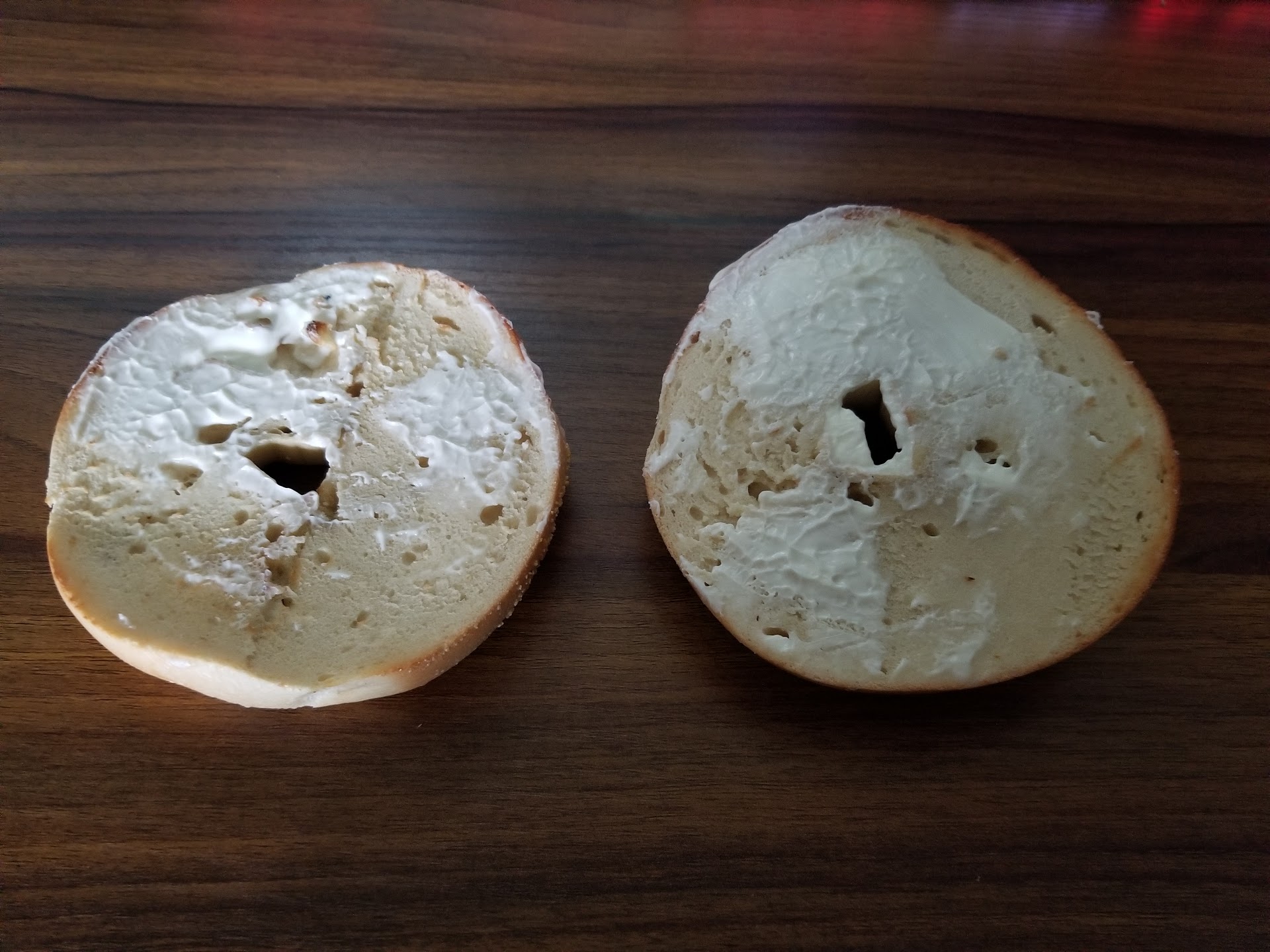 The worst Dunkin Donuts I've ever been to. They are constantly "out" of most of their stock. The service is extremely slow and lack luster. The employees seem completely incompetent. Whenever I order a bagel with cream cheese they give me a semi toasted bagel with cream cheese on the side for me to smear on myself. who orders a bagel with cream cheese and doesn't want the cream cheese to be on the bagel? Today I ordered 2 bagels with cream cheese and I specifically asked that they have cream cheese on them.. Below Is a picture of one of the bagels. I ate the first one and was so displeased for the millionth time with this store that I decided to write this review. The person I went with this morning ordered a jelly donut, this was at 8:20am, they wait till we pull up to the window to pay and tell us they are out of jelly donuts. Ok we order a Bavarian cream donut instead, the employee hands me a bag with a donut turned face down in the bag, the donut is completely stuck to the bottom of the bag. I ask for a different donut, because the topping on this one is stuck to the bottom of the bag, but now they are out of Bavarian cream donuts. So I just said "can we get any cream filled donut and please place it in the bag so that it doesnt stick to the inside of the bag. This place is a mess. and should just be closed down. They are lucky that dunkin is willing to decrease the public opinion of their brand because this store would not exist if it was a mom...