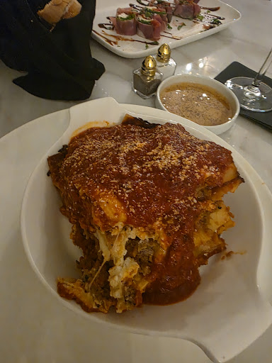 The food was PHENOMENAL, I received complementary meatballs since I was seated in the kitchenāsomething anyone who sits in the more casual spot of the restaurant receives. I ordered the Arancini to start, and obsessed is an understatement. I had to stop myself from eating them all to leave room for my main entree. When my lasagna arrived, you could see the steam coming off of it. Not only that, the portion was big enough for 2. They aren't greedy on sauce either, a huge plus when you finish it off the next day. Not to mention, they made a very solid choice by going with international bakery on the Italian bread. Oh, and I can't stop thinking about how good the pizza smelled, I wish I would have ordered one for a late-night snack.