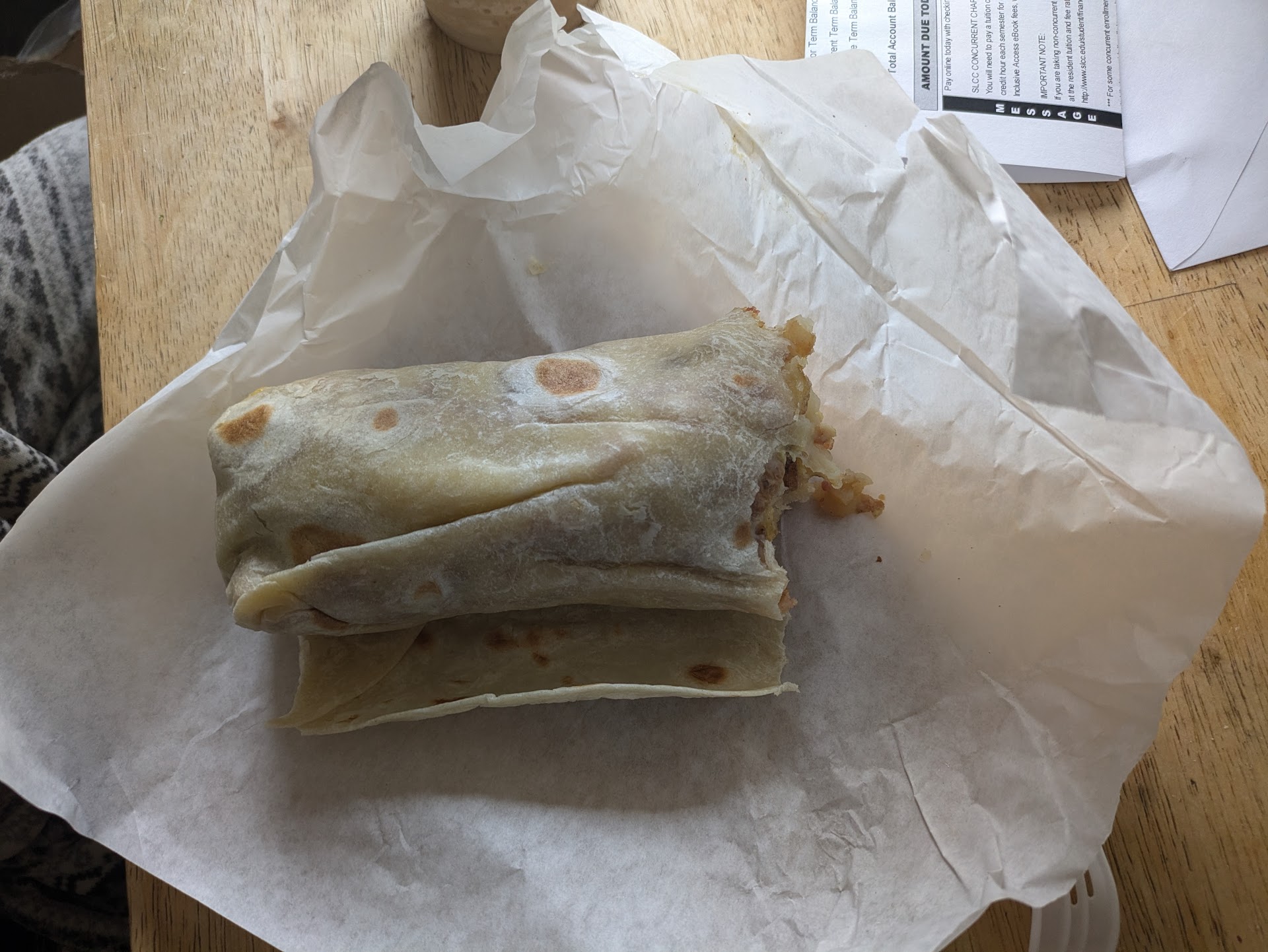 It took me a half hour to eat my carne asada burrito. It was all chewy fat, and they forgot to salt it.