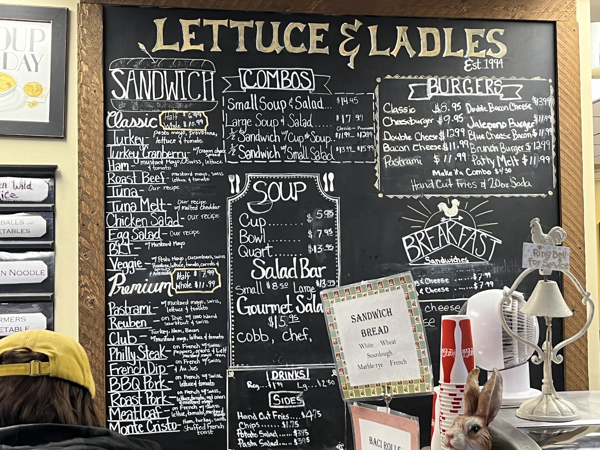 Read moreNice one of a kind place. The service here is absolutely exceptional. They are so kind & cheerful. The fries are very good. The meatloaf is popular. The atmosphere is very pleasant with serene music. When first went in was trying to Shazam the song. Then realized it was coming from the awesome clock on the wall behind me. The decor here has a very agrarian home feel to it. Will return to try the meat loaf everyone was ordering. Maybe try some of the yummy looking desserts too. Came here after went in the Dollar Tree next door. Saw like 30 people go in Lettuce & Ladles. Decided to give it a try. The fry sauce was okay. Next time I’ll try ranch. The pasta salad was unique. It has an almost beer taste to it. Not at all Italian vinegar like pasta salads typically are. The serving was quite small for the price. It was maybe 4 ounces for $4. Was thinking for price it would be 12 ounces or maybe a pound. It was interesting...