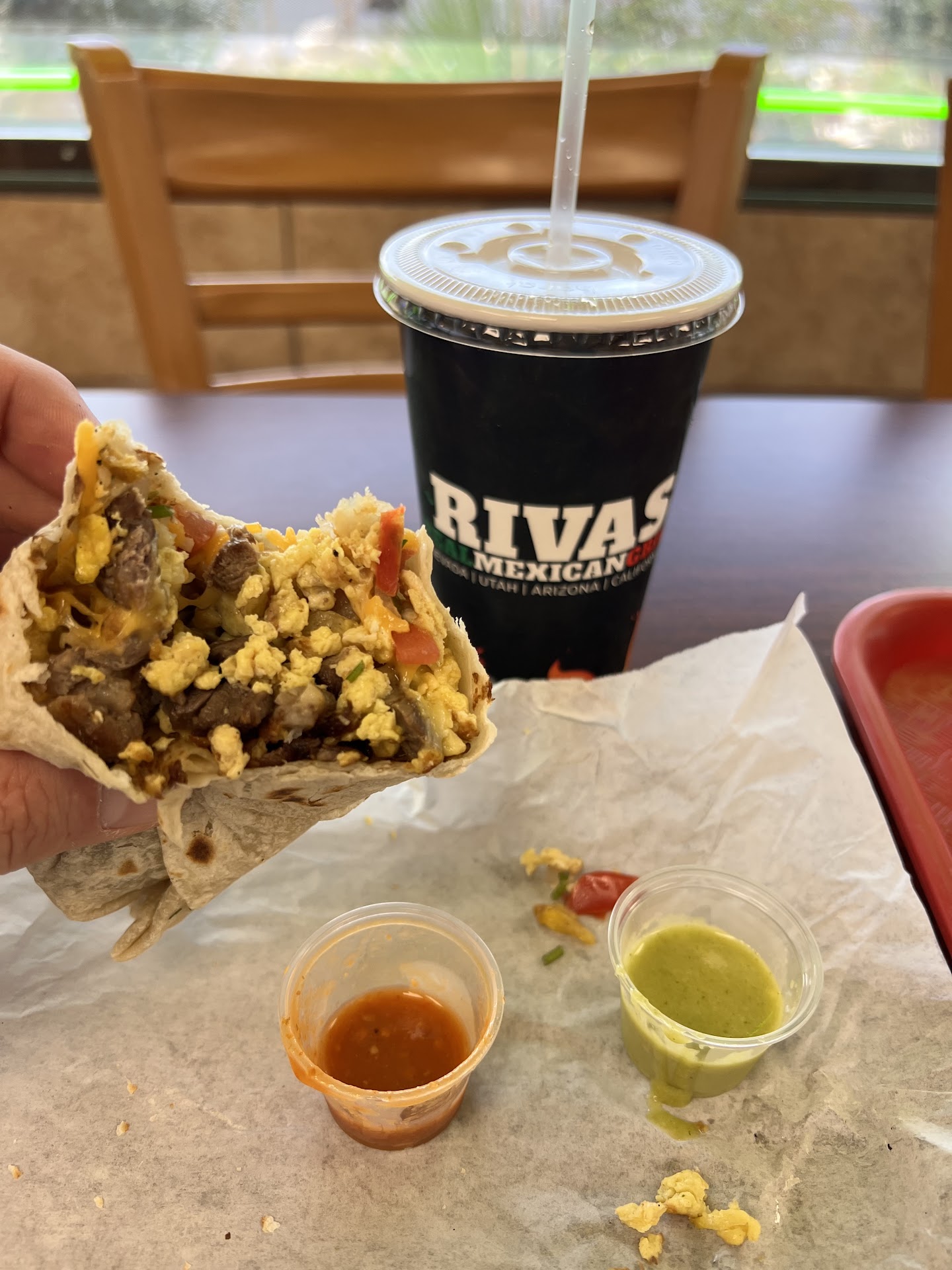 Drove thru the drive thru at Rivas on 900 East and 4500 South yesterday. We ordered the Chiles Rellenos Combo and the Rivas wet Burrito Combo.