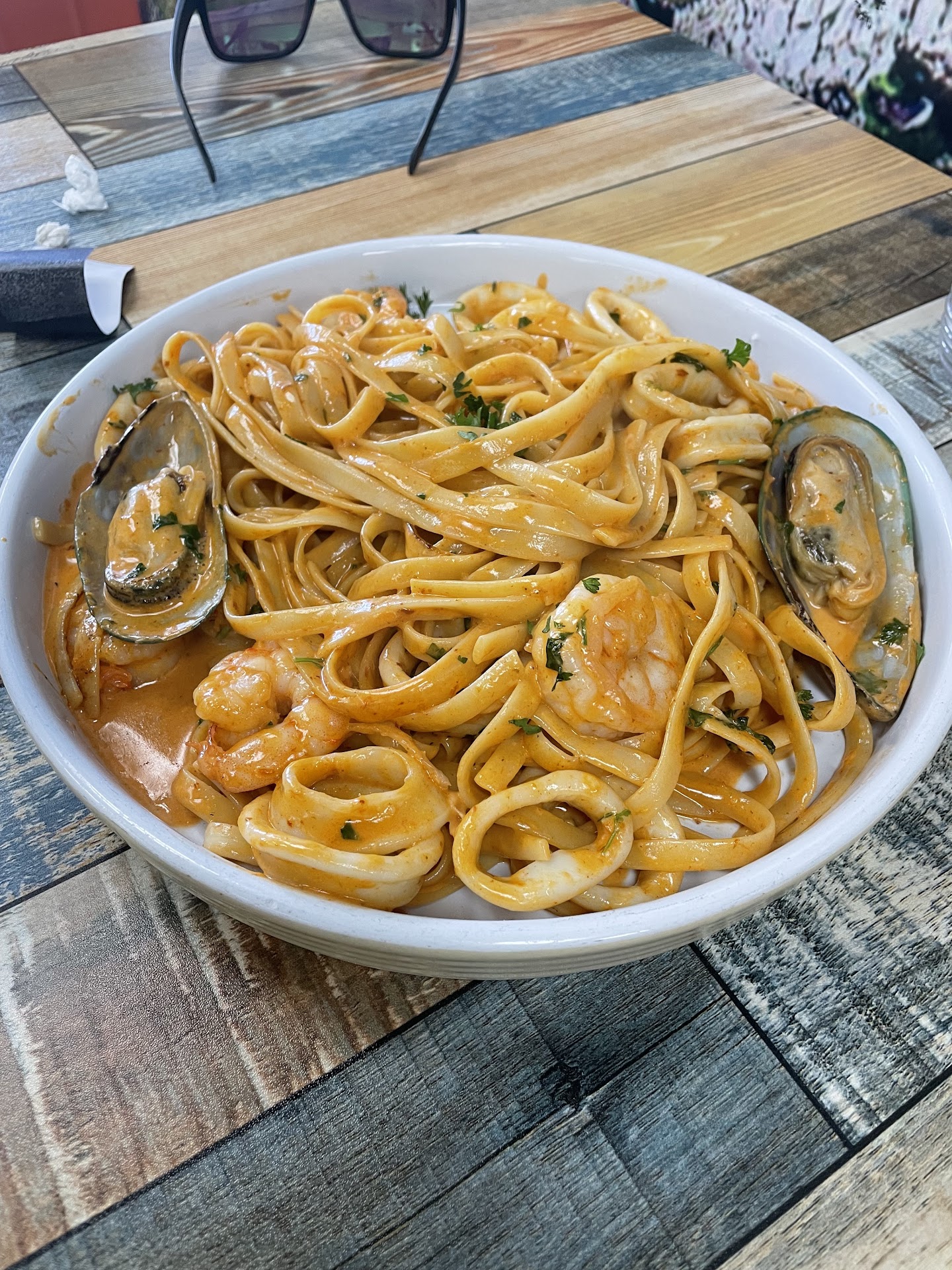 We ordered the aforementioned dish, a fish fillet topped with creamy sauce and other seafood with a side of rice. We also ordered the pasta en salsa de mariscos. That was a very similar dish with pasta in place of the fish fillet. Both were excellent, though I should have ordered two options which were more different. The sauce was everything I hoped and dreamed...
