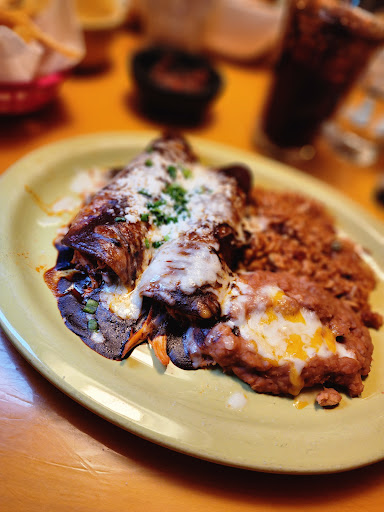 Two weeks later my girlfriend and I were in the area and decided to stop and try their food and some of the drinks; since I was told during my interview process that their mix drinks are the best in town. We order 2 Margaritas and some food. I got an enchiladas plate with white sauce and cheese and my girlfriend had chicken tacos. I have to say the only good thing that I could rate with great flavor was their red sauce and chips. I have never gone to a Mexican grill who offered enchiladas that have what it looked like to me Pepper Jack and Provolone cheese on top of the enchiladas. They were dried and the shredded chicken had very little taste. I had to keep asking the waiter for more salsa. My girlfriend food was not good either.