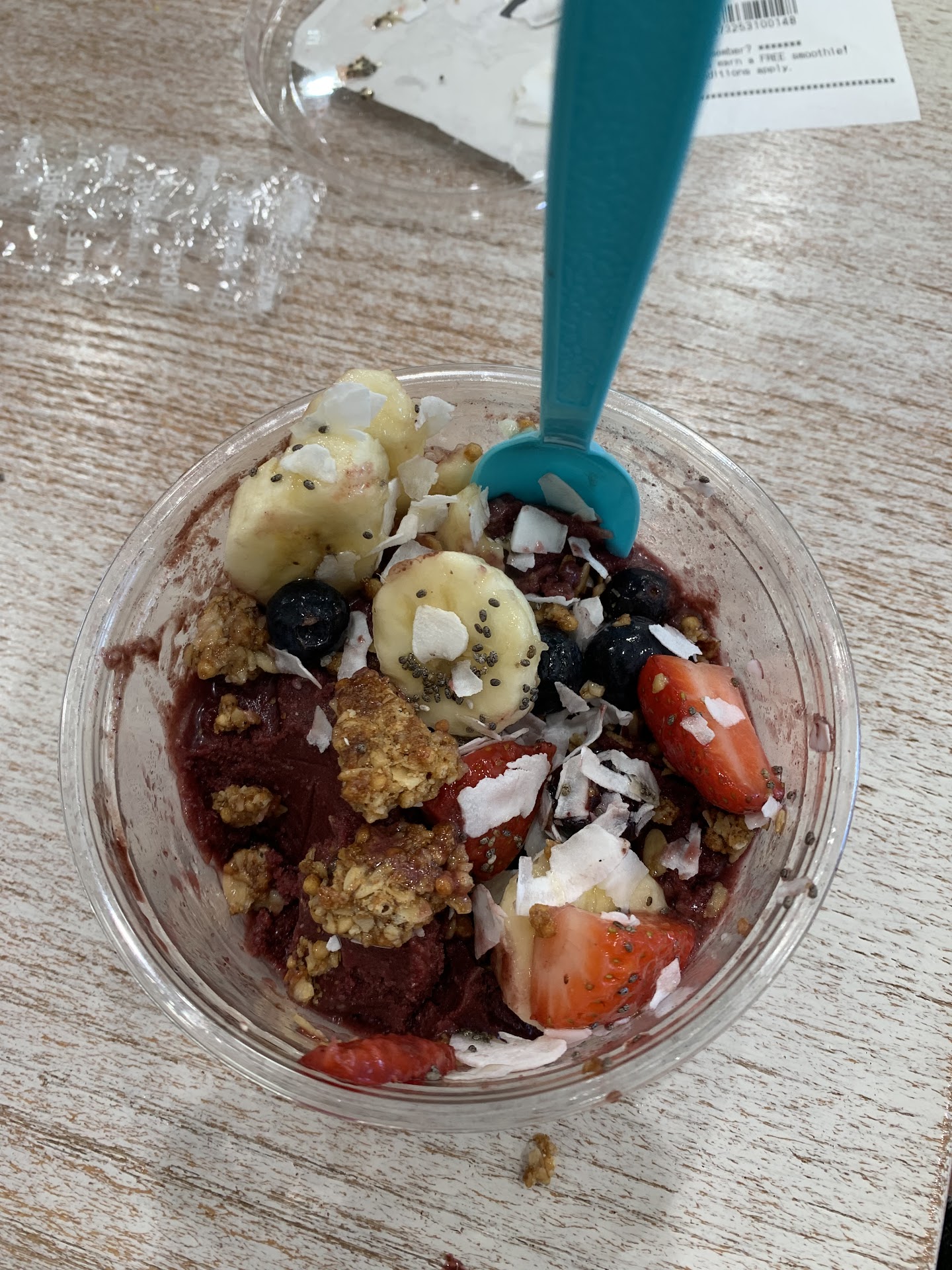Me, my wife, and MIL stopped in here because I was craving a smoothie as I’m currently pregnant and we’d been out all day around SLC walking. They took the order fine but it was when we had waited over 20 mins to finally get our food my MIL asked what the hold up was. They at first ignored her which made her upset and finally acknowledged her and then said they had given our order to the drive thru instead. What? The kid who took our order SAW US sitting and waiting for over 20 mins. They were NOT busy! 3-4 other employees were just standing around goofing off and doing nothing.