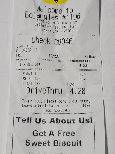 Read moreFirst off lets start with, its spring, its daylight out much later now and all the kids have activities. Last night after ending a late night ball game we needed a quick bite to eat so we decided on Bojangles, which online says closes at 10:00pm, but the door says 9:00 p.m., we walked in at 8:28 p.m. and all the chairs in the establishment where on the tables. We ordered our food through a passive aggressive cashier who didn't have the decency to return a thank you with a your welcome (call me crazy for believing in common decency), and when we got our food and sat down the employees began locking the doors with us inside, I'm assuming to deter any other hungry customers away. Now, as for the food my husband ordered a 5 piece tender and he received the tenders that look and tasted like they were cooked at 6:00 am that morning and left under the warmer all day , the also did not give us our BoBerry biscuits so we had to request them before we left, thankfully we remembered. All in all this place needs a healthy dose of customer service training and some happy pills because the vibes were gross and...