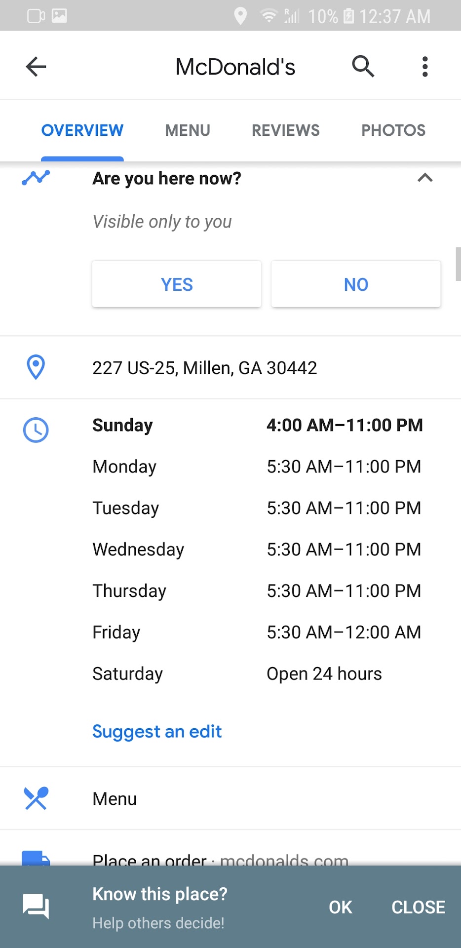 Read moreI'd give zero stars if that were an option. Every McDonald's I've been to, in the state of GA, is awful! There's always a ridiculous wait time even when there's only 2 or 3 vehicles in the parking lot. And it is EXTREMELY rare for them to get the order correct! This most recent time, I ordered 2 double quarter pounders with cheese and 20 piece chicken nuggets. They handed the bag out the window and I found two boxes of 10 piece chicken nuggets and only 1 quarter pounder with cheese.... My son loves their food, and we prob go once every few months, hoping there's been a positive, good change to the staffing and the service, only to be repeatedly disappointed! The staff members are rude and always have such an unpleasant attitude. And when you do have to walk inside with your bag and politely let them know you are missing something, they get get even more rude and ugly. It is frustrating how much a resturant can have decent food but never have...
