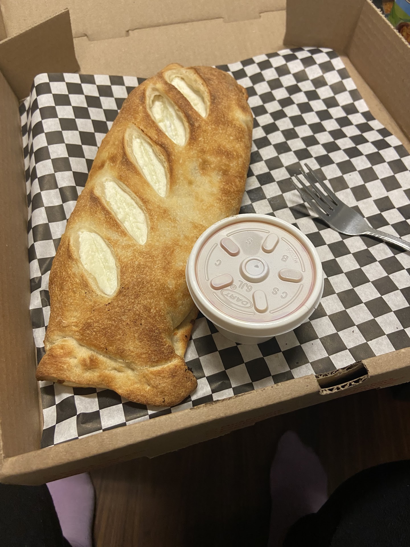 The pizza is mid. Nice puddle of grease always on top of that is your thing. And the cheese has that I'm almost Swiss taste to it and is semi solid even though it's piping hot.