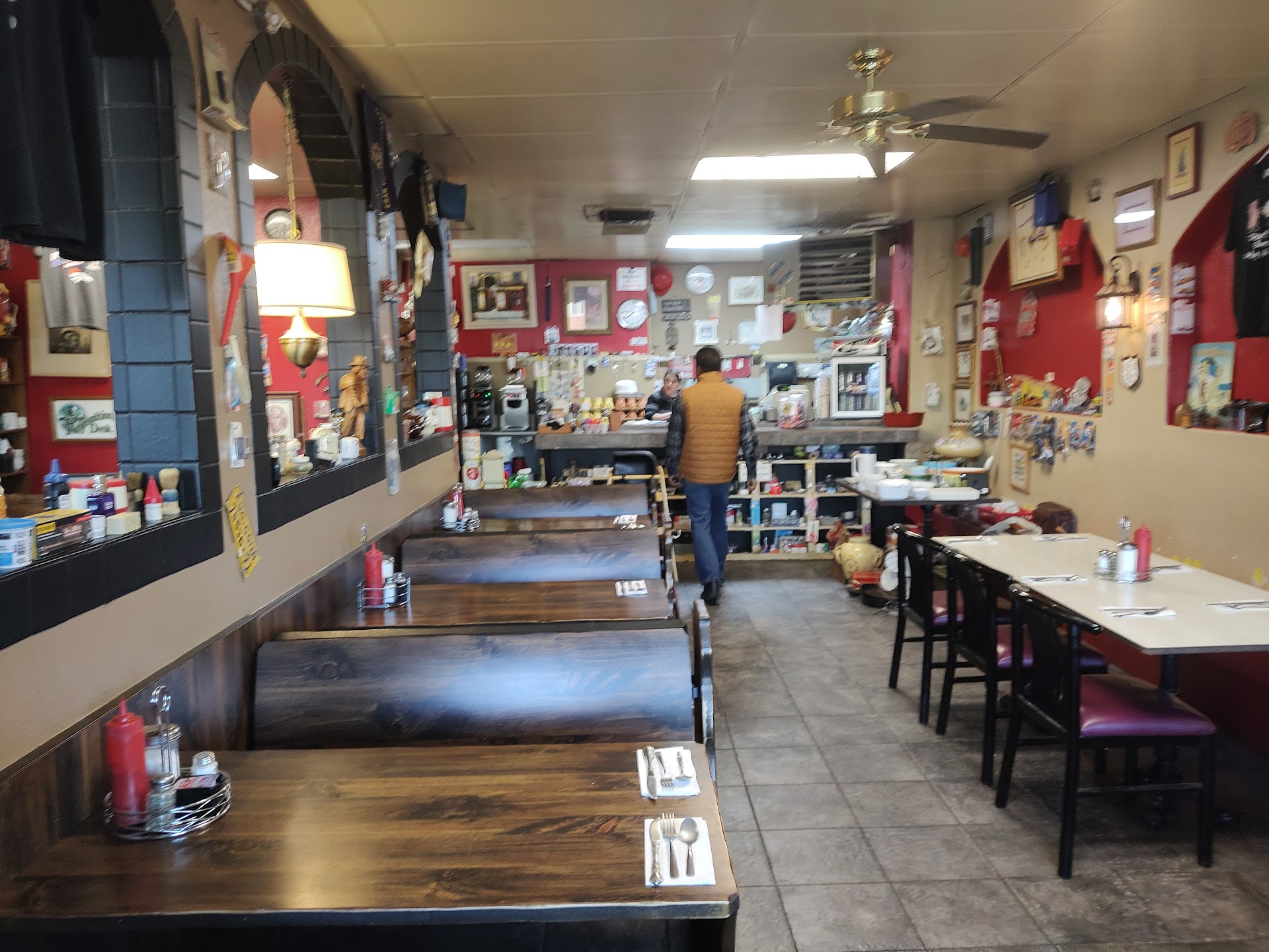 I love supporting small business. This very clean little mom and pop diner w/small thrift store items for sale. It was very quiet upon our arrival, no people, no music, silent. Just when we thought they may be closed we were greeted by a waitress. She was very hospitable, nice, and answered my many questions. 1. Is the green chili vegetarian? No, lard. 2. Are the beans vegetarian? Yes. Do you have salsa? Yes, but, in a packet, not fresh. I wouldn't think the country gravy is vegetarian either, but forgot to ask, it's traditionally made with chicken stock. Anyway, the questions helped w/my ordering, I ordered the huevos rancheros, no green chili. It was okay, the hash browns were a little greasier than I would prefer. The salsa packets, not good. Hubs had a basic breakfast, eggs w/cheddar, (you should specify, or else they use American) bacon, hash browns, and french toast. His french toast was burnt on the outside and smooshy on the inside, sadly he didn't say anything, and ate it disappointed. We also ordered beignets and a cini mini. The cini mini was a small cinnamon with icing pancake and it was delicious! The beignets weren't authentic, in the fact that they were more dense biscuity, instead of a light and fluffy, like a French style pastry. Overall this place was decent and worth dining at, there was a small crowd before we left, still no music (which I found bizarre). They could use a few minor improvements to really make this place pop and be more mentionable. Natural maple syrup, fresh OJ, salsa, and no one time use plastics, ex. straws/bags and styrofoam. Let's help save Colorado and the planet (we only...