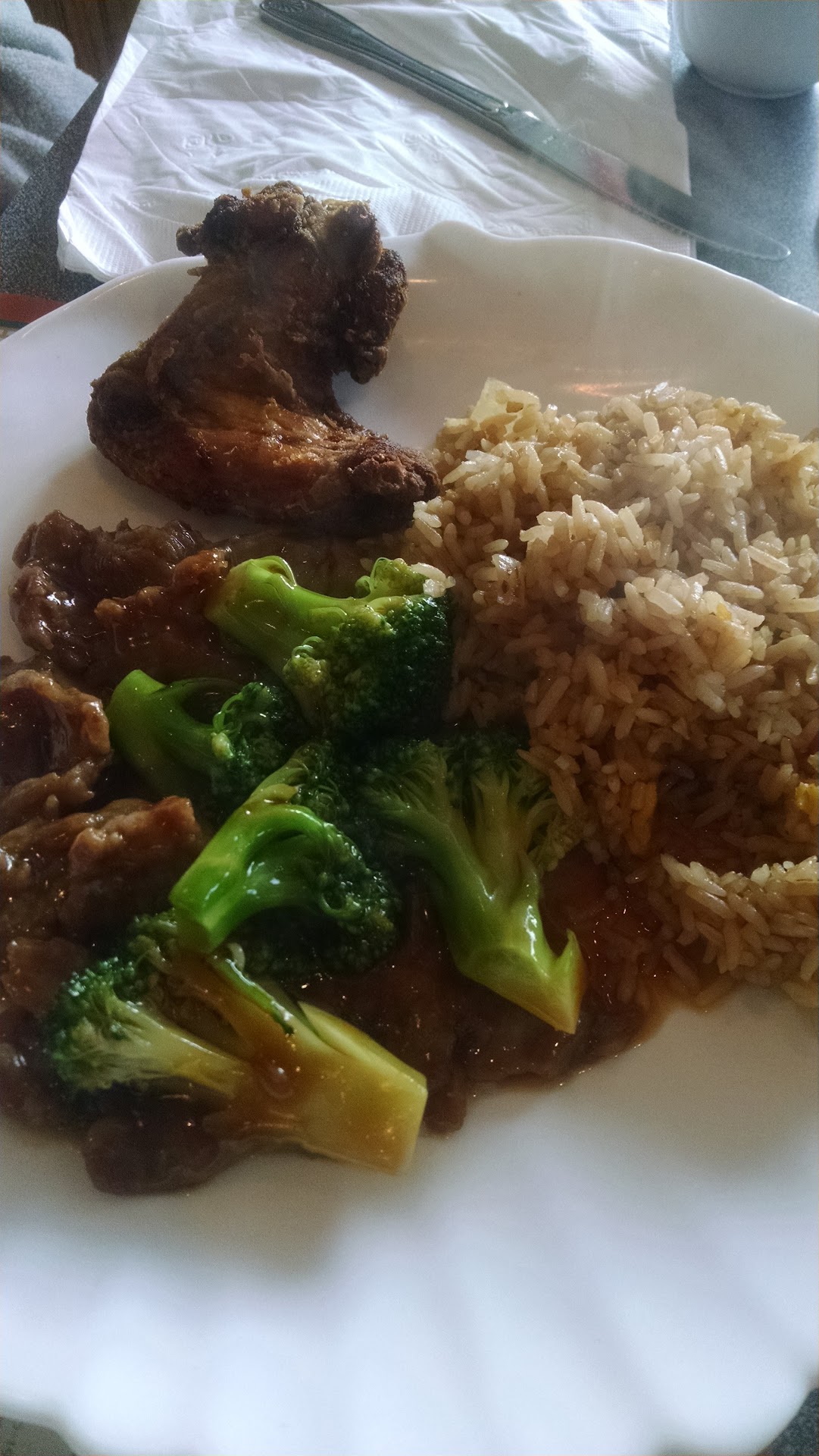 Ā Ā Ā Read moreI received a gift certificate for this place. Maybe I just haven't had much egg drop soup but I couldn't get past the consistency. It was so glutunous . But they were nice & changed for wonton soup. Broth was excellent. Wontons were ok. I got a lunch Kung POA meal & my daughter got beef with broccoli. It was pretty good. * My main issue was there was a hair in one of my friend wonton chips & a hair on the chicken I ordered. The photo I included shows the chip( need to look real close) & hair I moved onto plate. Are they using hair nets in kitchen? I didn't want to be difficult cause I was using a gift cert. So I didn't say anything.( My hair is long & brown-...