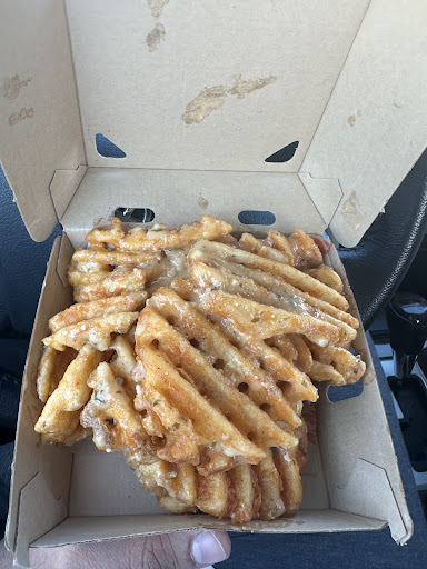 We had Garlic Parm waffle fries as well as OG chicken Sando and cheesy hot chicken Sando. Both sandwiches were made medium hot as chosen by us.