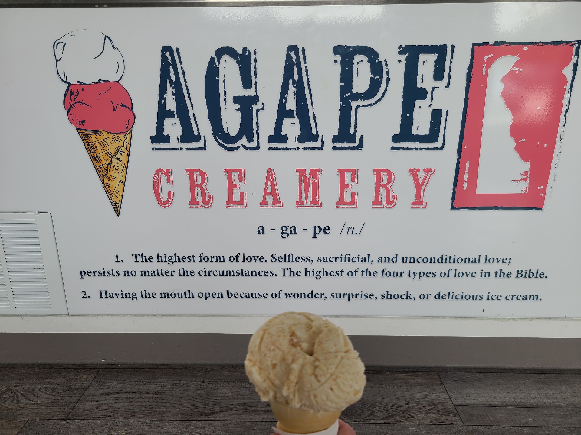 Read moreWe were in town visiting family and we’re excited to try Agape Creamery. As we’ve experienced a ton of dog friendly establishments (especially ice cream shops) elsewhere in lower Delaware, we thought it would be a great treat to bring Joey, our well behaved 4 year old companion! When we arrived it was busy and seemed just like the kind of place we were hoping for. My wife got in line and I was waiting outside the creamery until there was room to go inside. I was approached by an employee who informed me that dogs aside from service dogs were not allowed. I asked if he meant inside or on property. He confirmed dogs were not allowed on property because they didn’t want any dog bite incidents and we promptly decided to leave. There were no signs or notices that dogs were not welcome. Quite disappointed and hope this review helps others wanting to enjoy a summer treat with their furry friends avoid an unwelcome...