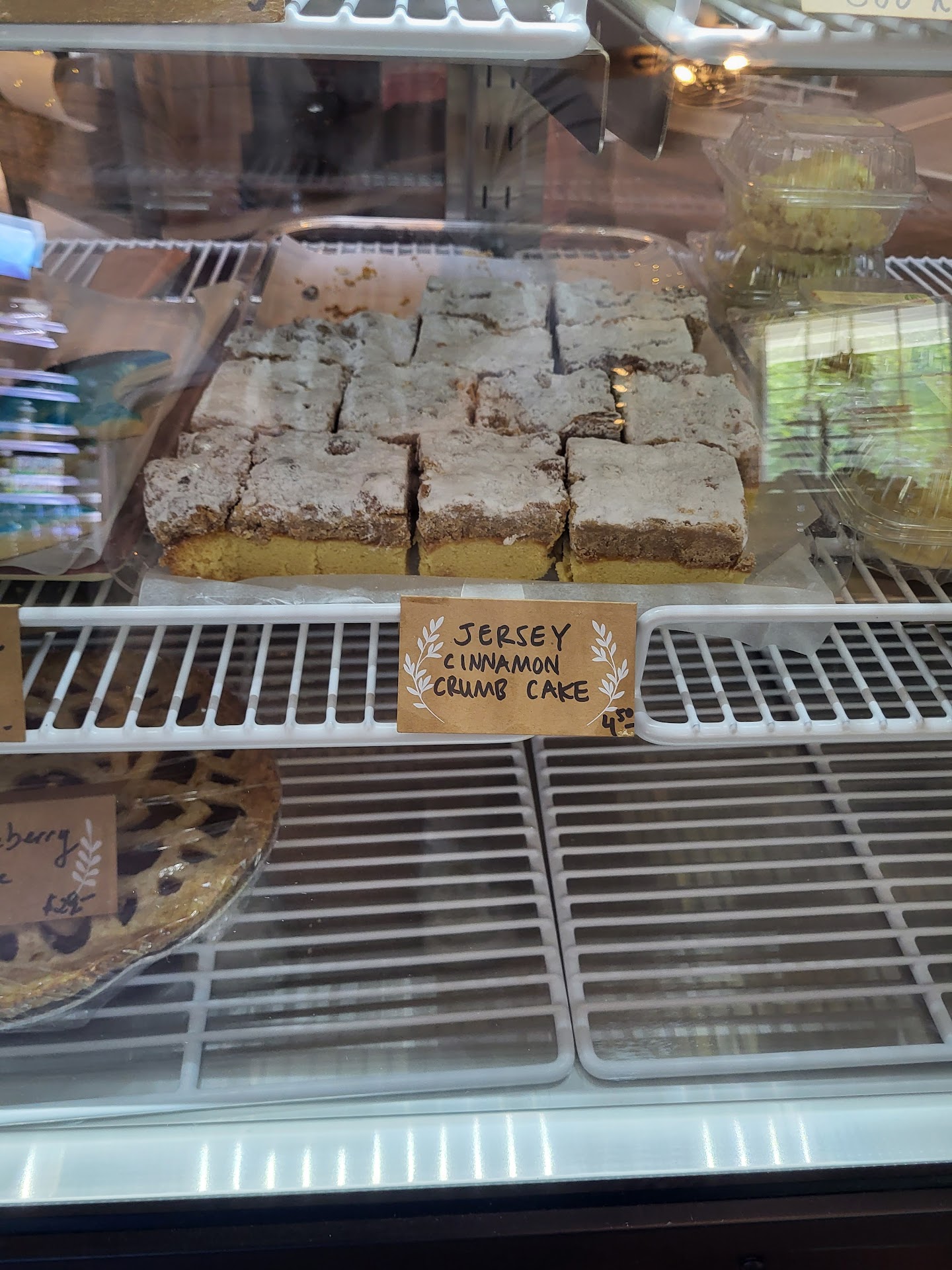 We tried five different confections (Jersey Cinnamon crumb cake, Orange cream olive oil cake, frosted key lime cookie, blueberry lemon scone, Cinnamon roll). Our favorite was the orange cream olive oil cake!