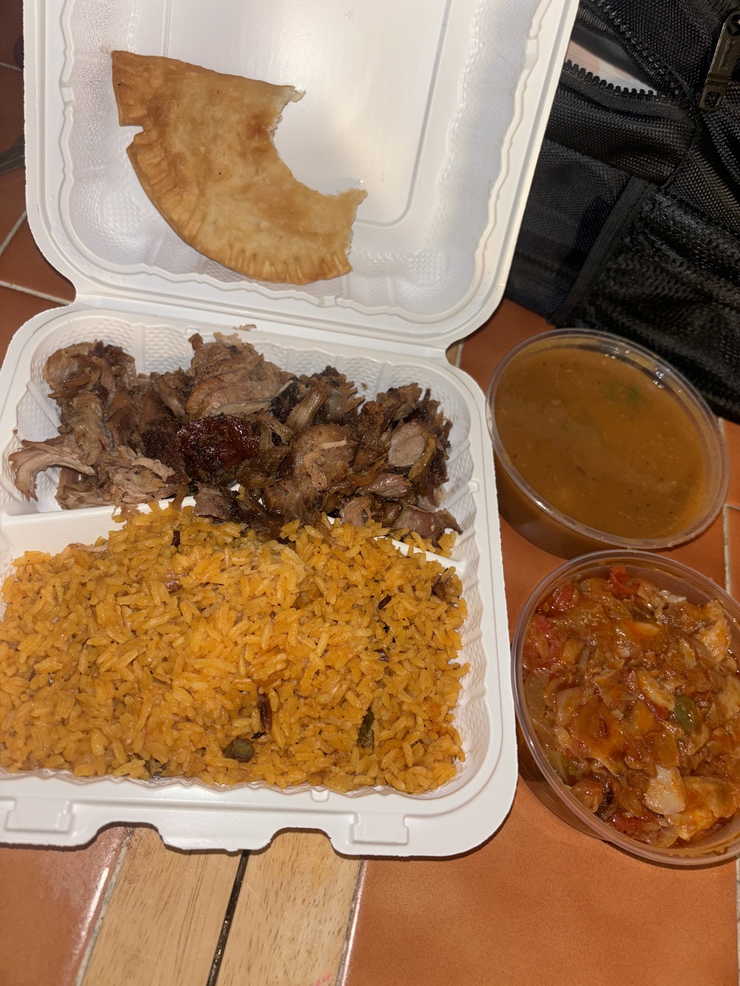 I was not impressed (no pictures) I orders rice,beans,steak and pepper the food smelled wonderful . The rice lacked seasoning(my kids would not eat it) the steak peppers and onions was flavorful. The food was not hot the chicken empanada was dry/cold(you can tell they cook and let the food sit until itās gone not fresh). I was charged extra for using my card $1.00 then a charge for a bag(I did not purchase) then once my card was run I asked for my receipt I was told I sent it to your phone number (but you never asked for my number) a few days later I received my receipt. Overall we have too many Spanish food stores to choose from so I will not be...