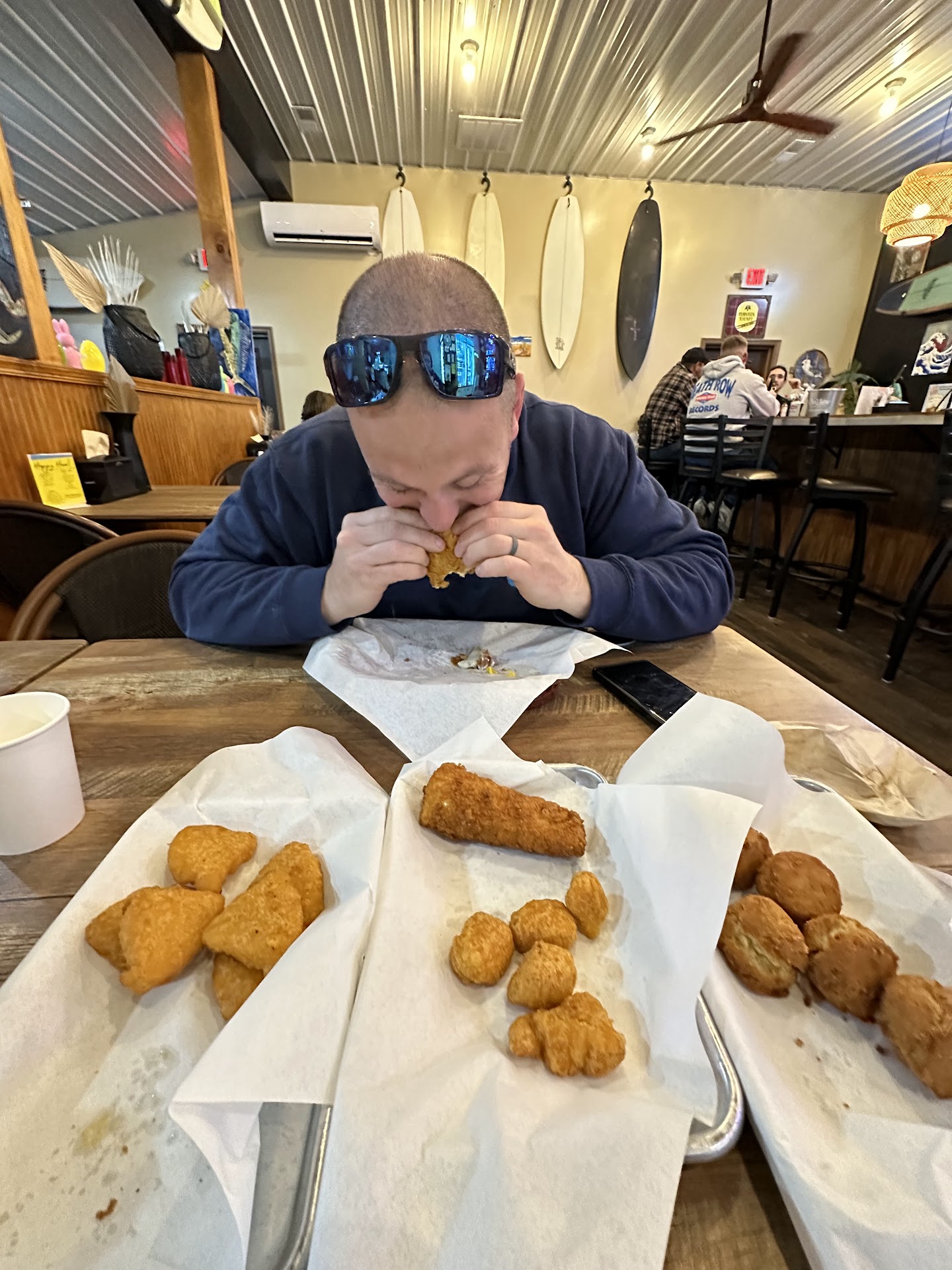 This was my first time here, I ordered carry out for lunch . I got their Tuesday taco special. The order was 1 fish taco and 1 shrimp taco, the meal comes with chips I subbed the chips for fries and added a side of crab dip. I thought the hostess was pleasant and the atmosphere/seating arrangement was nice as well. I asked for cheese on my tacos and received a side/cup of nacho cheese. I’ve never had or seen nacho cheese on a taco before. I assumed they did not have shredded cheese but when I asked I was told they do have shredded cheese and that is typically the cheese thats given when someone asks for cheese on their tacos so I am unsure why I was given nacho cheese. The sauce that does come with the tacos tasted like yogurt. Both the fish and shrimp tasted fresh and were fried well, but I feel they were not seasoned or severely under seasoned. The fries were good and seasoned. The crab dip was super oily so much so I had to pour oil off of it to eat it. Although it was oily I tasted fine the crab dip was ok. Over all the meal was ok and edible I just thought it would be seasoned, it unfortunately was not to my liking I will not...