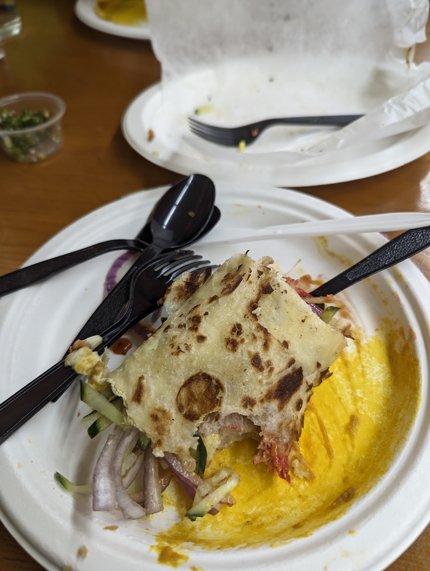 Read moreThis was my first visit to this place. This is located in a small complex with about 15 car parking. The parking of the next lot could possibly be used. This is the same place with Everest momo food truck. The restaurant is big enough to accommodate about 25 customers at a time. Based on the existing reviews, I wanted to try the egg roll. Yes, Calcutta egg roll did meet my expectation. It reminded me the taste of Calcutta street food. The egg roll had the correct amount of sliced onion, cucumber and sauces. This is different compared to "Kathi roll" as being served in other restaurants in bay area. Most of the restaurants use frozen lachha paratha for the roll. This was not the case for this place. It was really good. I would give 9 out of 10 for the egg roll. But I was not too happy with most of the other items I ordered. Even chicken in the chicken egg roll was not that great. Other than the rolls we ordered Aloo Tikki chaat, Gobi manchurian, paneer puff, misti doi and chocolate cake. For the aloo tikki chat, the chhole was too dry, it was worse with the tikki. Not enough chutney/ onion...1 out 5. Gobi manchurian - The cauliflowers were fried well, they were crispy but the sauce did not do a justice, seems to be prepared with sweet chilly sauce off the shelf. 2 out of 5. Paneer puff - It was not puffy/ flaky. The stuffing lacked taste. Chocolate cake - The taste was good but it was dry, must have been on the shelf for a while. Misti doi - It was good, just as it should be!! Overall experience...
