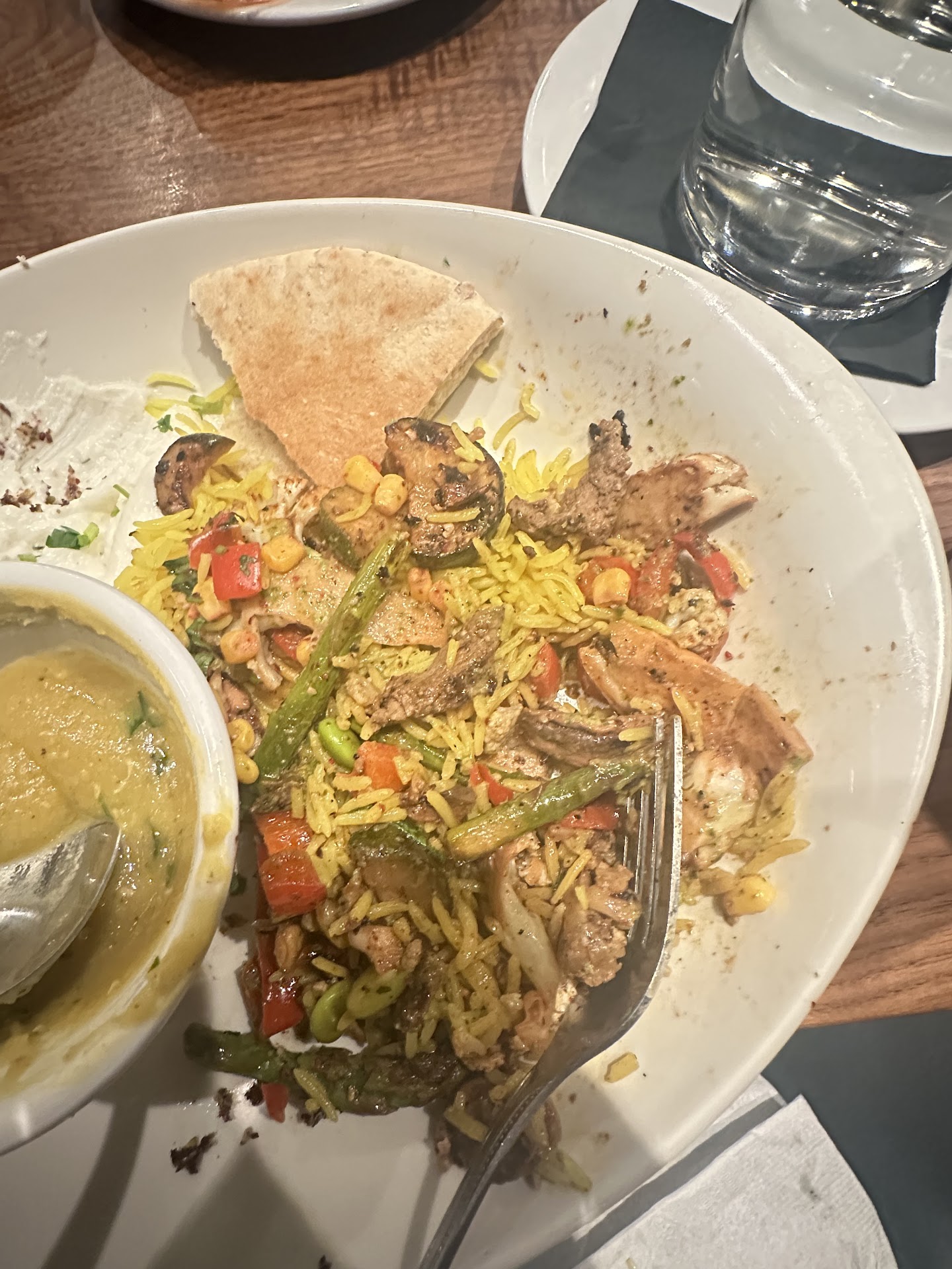 Tika Kebab: DELICIOUS. The meat was super tender and it had so much flavor. I didn't even dip it in the lime sauce they had, I wanted to try it without anything first and it already tasted great, with the sauce even better. I couldn't get enough of it! The brussel sprouts were also really tasty since they roasted it!