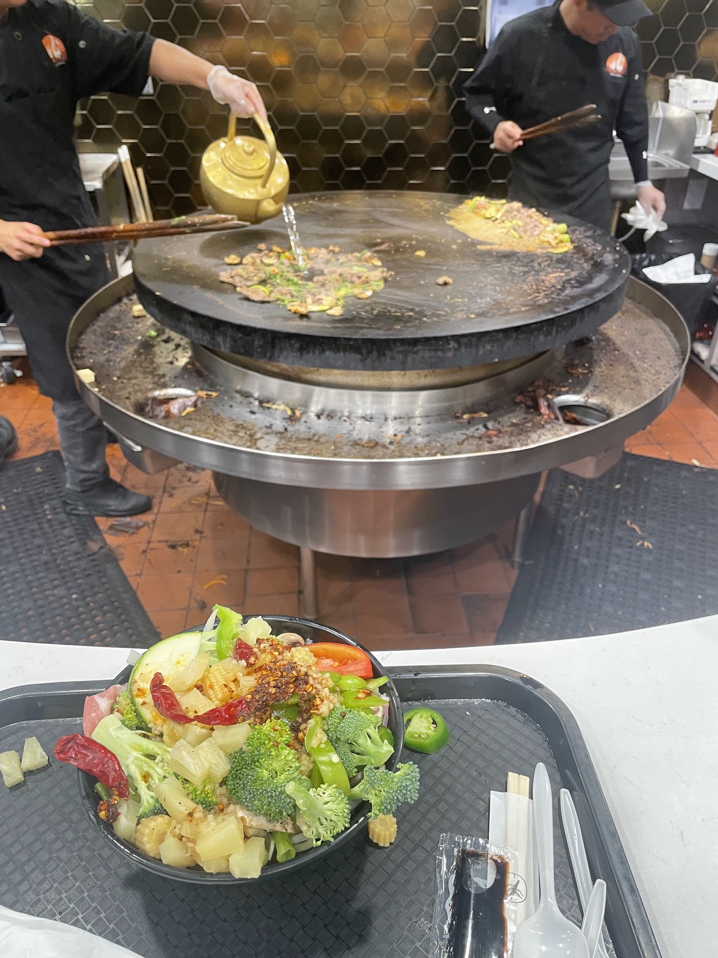 Read moreThe food is good. They give you a bowl and you add veggies and meat into it. Then you give the bowl to them and the add sauces and noodles and cook it together in a big pan in front of you. They used to have more veggies and different type of noodles before. But now they only have one type of noodles. Plus the price got expensive. Plus if you get veggie only, they can clean the pan before they cook the veggie one, but you have to tell them. The veggie only has option of tofu I think. Over all, quantity is much,...