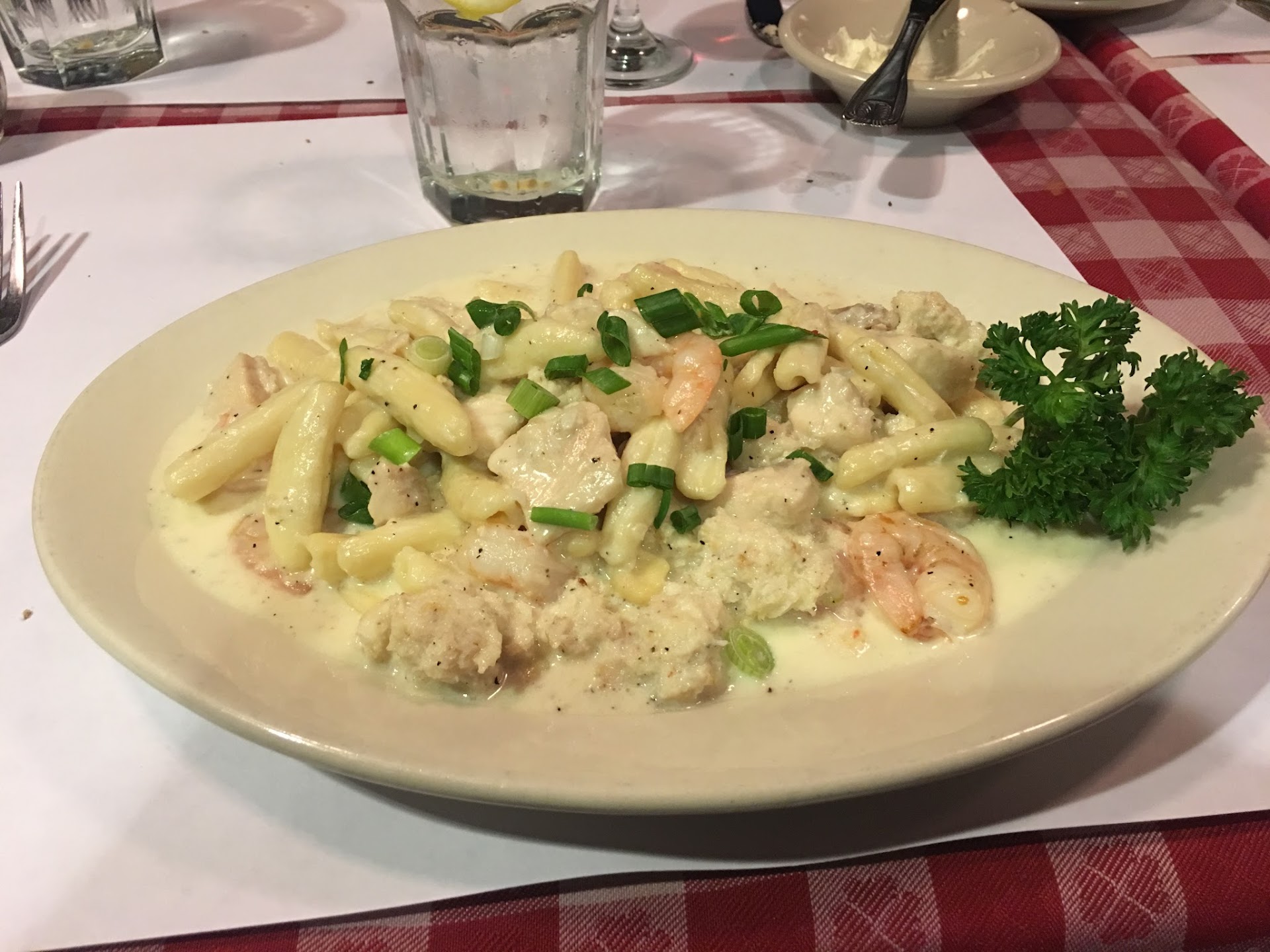 Went there for a birthday party and with family from out of state. We had 3 tables. 2 tables ordered a clam appetizer and they thought it tasted too fishy. Fishy means bad? So 1 table did not eat it. The chicken fettuccine dish ...the chicken was rubbery. My dish was totally made to my request and it was good. I got pesto sauce with penne pasta. The penne pasta with the bolongnase sauce was good too. The rest of the food was ok. I did not like asking for water refills. Why is water served with no ice? The water refill person saw my spoon fall to the ground and he did not offer another one. Had to ask for more bread. Had to ask for more napkins. We had 10 people at 3 tables. For all the money we spent, I feel that the service should have been 100% better. Also, I didn't like when the water waiter came out at 8:20 pm, threw his hands in the air and kind of made us feel like we had to leave. Mind u ... that was after we paid our bill, they had cleaned all but 1 table and had been given a good hefty tip, then they did that. I know they closed at 8pm, but we would not have went there if we had known that we would be "kicked out" so soon. Inside the restaurant there were other families that were still eating. The way we were treated was NOT ok. Disappointed to say the least. Embarrassed 😳 As we had talked highly about the food and service before. It's too bad because now, We will think twice before...