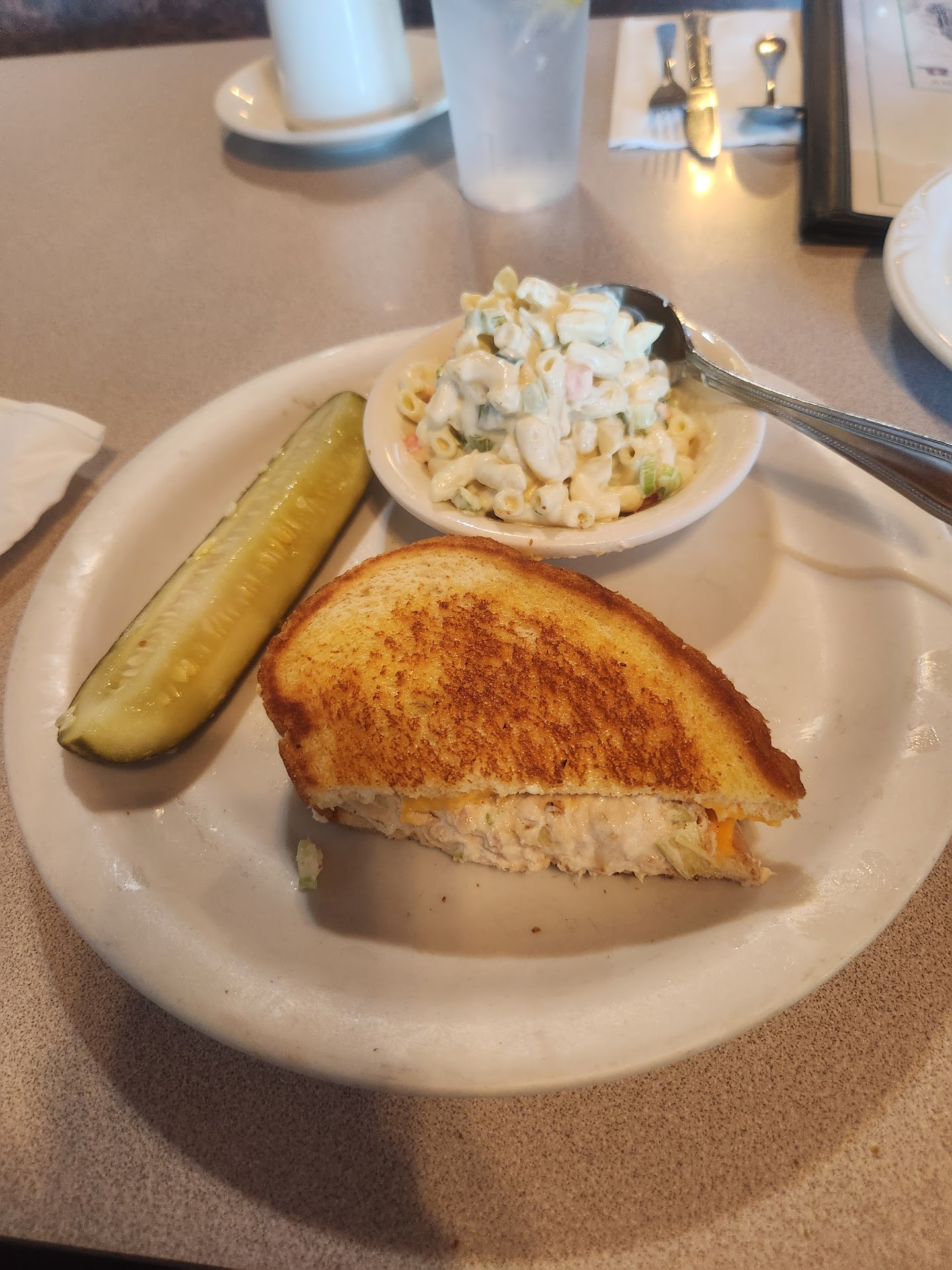 Read moreThis was my first time here. Mind you it was to pick up an online order. First of all, thus was the first hot day of the year. It was 97 degrees outside. The restaurant was hot, stuffy and smelled musty. There was one server working and one (maybe) busboy. I waited a few minutes until someone asked me what I was there for. I said I was picking up an order and was told my order was ready, but she made no move to go pick it up. Instead she went to a table and proceeded to talk to a customer. I had read they had a few regulars, so I figured that's what was happening. I was been there for about ten minutes by then, tired and sweaty. Then another customer walked in to grab her order and then they grabbed her order before mine. Finally after they got her order, they got mine. So I was not impressed by the take out service. As far as the food, I liked my chicken fettuccine and but my friends bbq burger was soggy after having been ready for so long. Unless theyre AC was broken that specific day, i Would not...