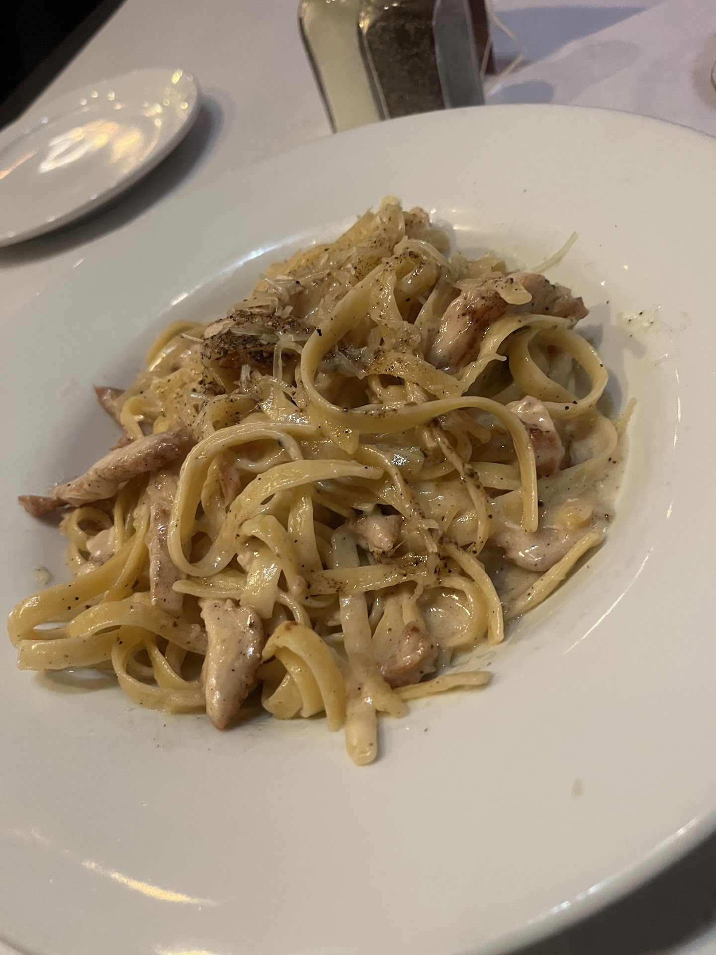 My biggest problem however was ordering pasta from a restaurant whose menu consists primarily of pasta dishes, and not getting ANY silverware or napkins. How was this missed?? I had to call down to the front desk of my hotel and have someone bring a fork because no one at Romano's threw one in, and the Grubhub drivers don't stick around long enough to verify an order with the customer.