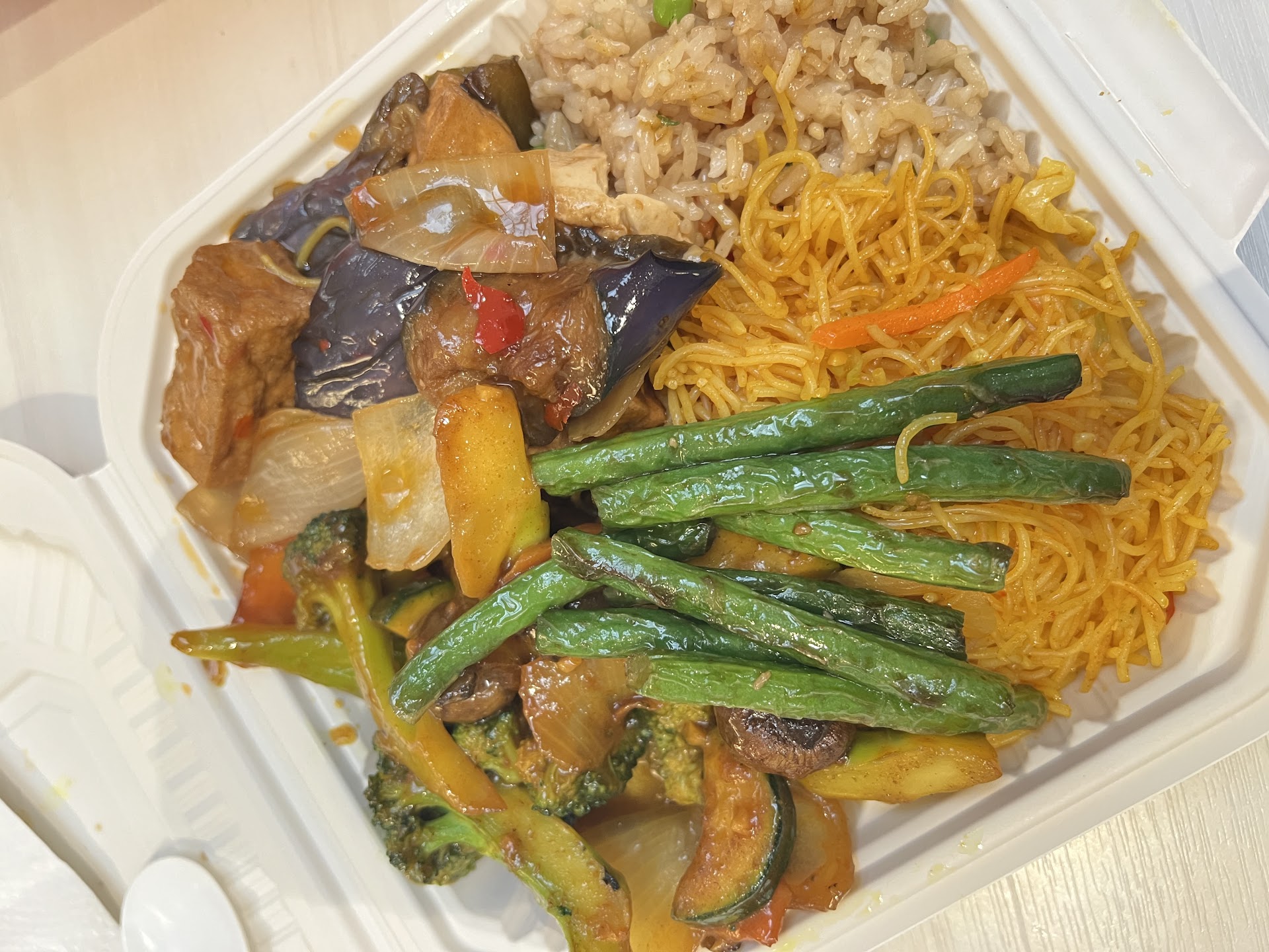 As a vegetarian, this food at this place is great! I usually get half pad Thai, half fried rice and a side of egg plant tofu. They claim that there are no eggs or meat in any of those items, awesome!!